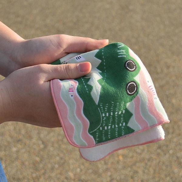 Serviette éponge – Crocodile vert, Fond rose – Kata Kata