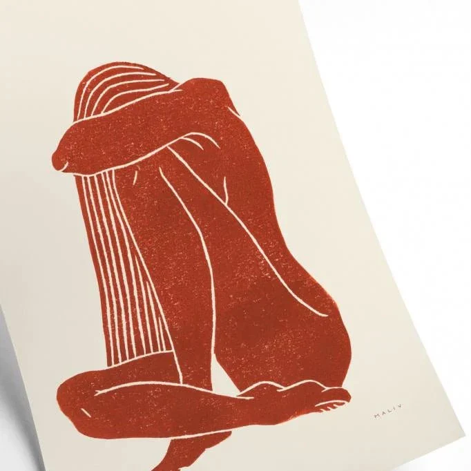 Poster en Papier Japonais – Femmes en Kimono – Mordoré, Rouge, Vert, Bleu et Mauve