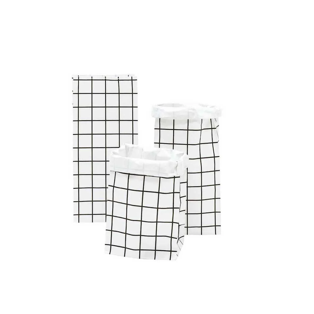 Lot de 3 Sachets à Fond Plat en Papier Kraft Double – Carreaux – Noir