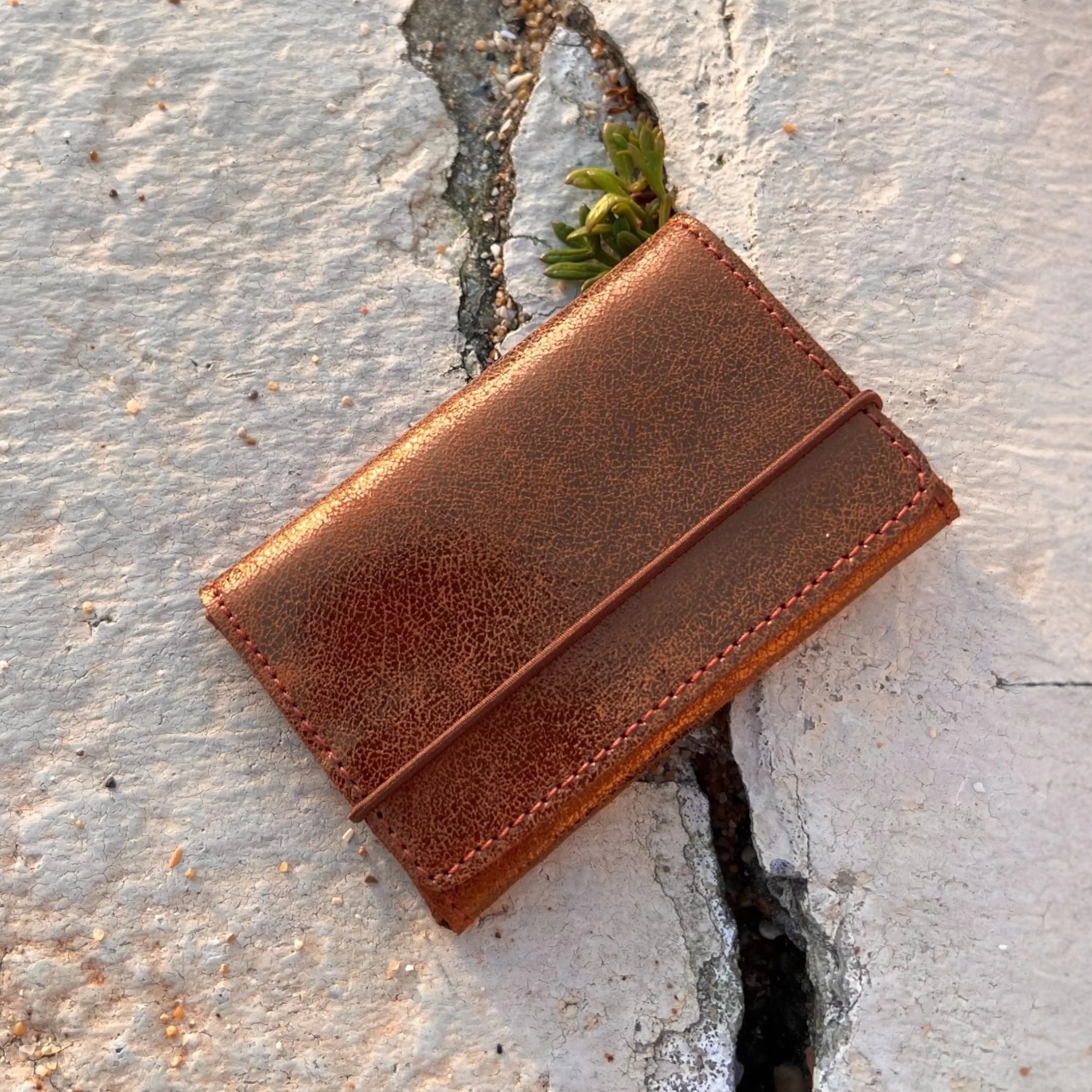 Porte-carte/monnaie/billets format Pocket 3 en 1 Cuivre métallisé/ chocolat