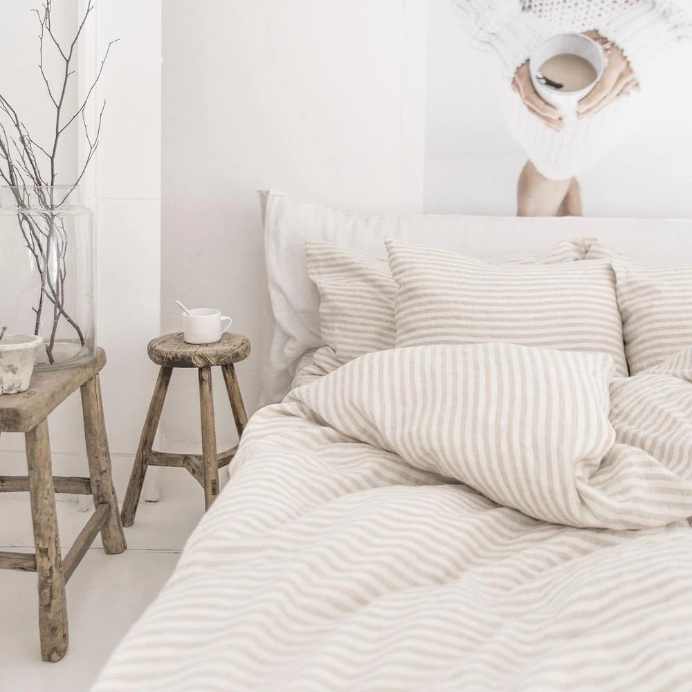 Taie d’oreiller en lin – Rayé naturel