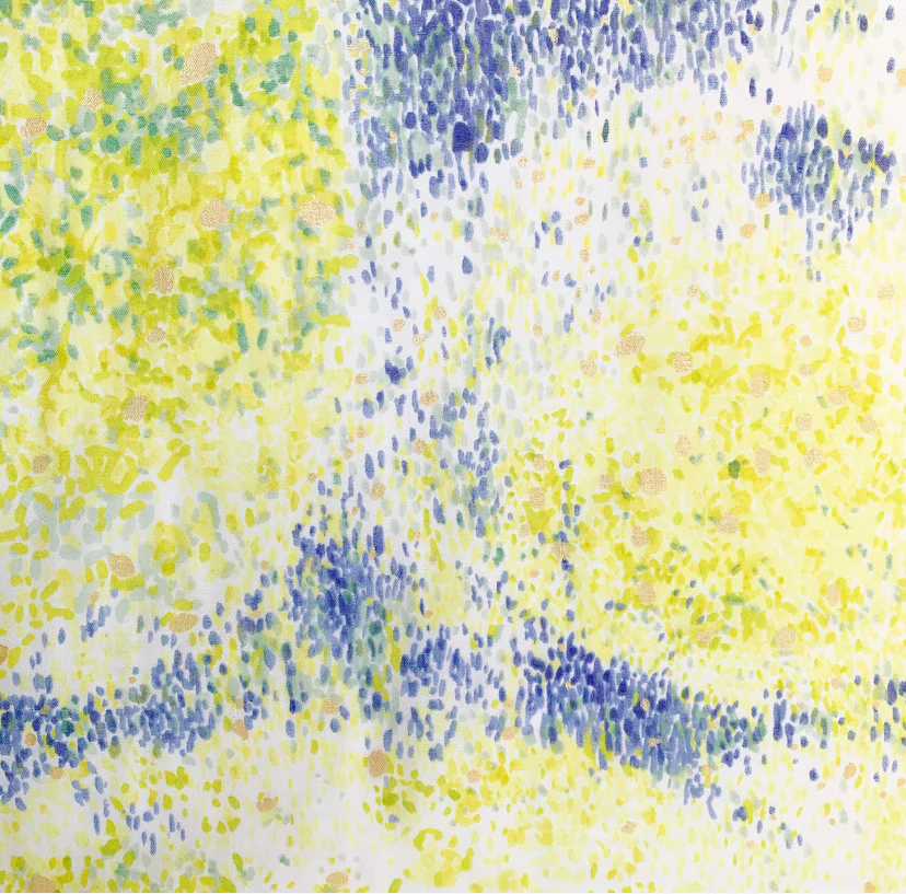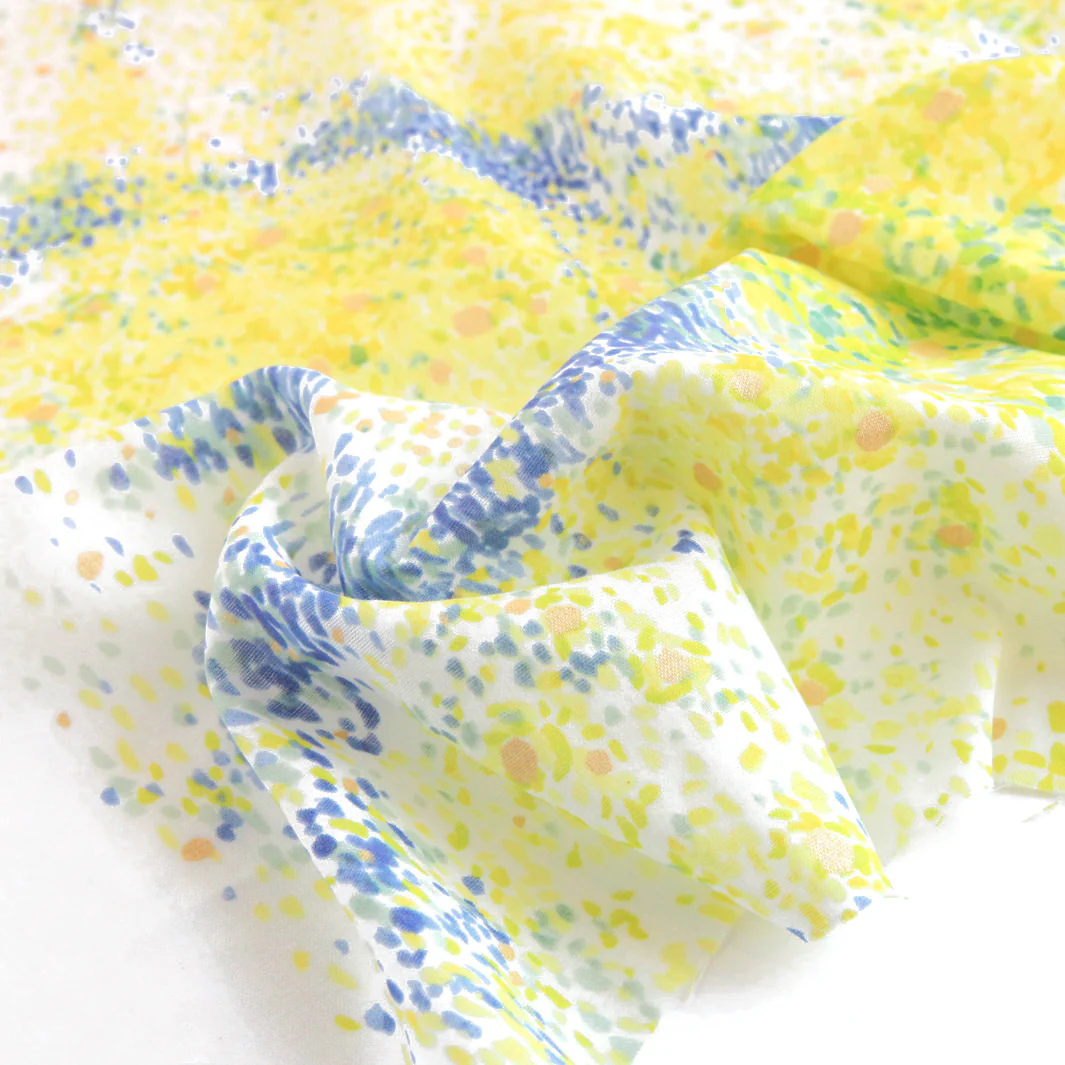 Tissu Japonais – Fleurs Mouchetées – Jaune, Vert et Bleu , Fond Écru – T397