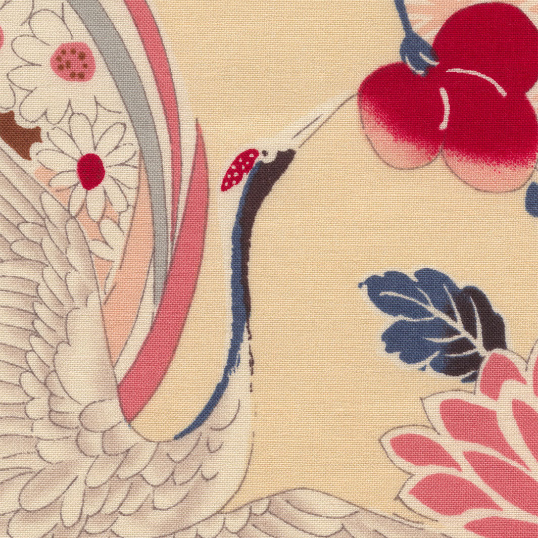 Tissu Japonais – Fleurs et Fruits – Beige et Jaune Paille – T514