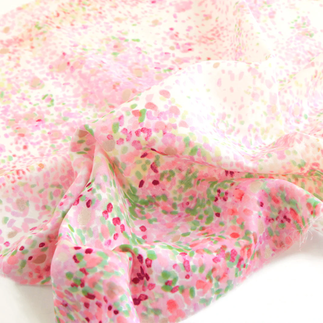 Tissu Japonais – Fleurs Mouchetées – Rose, Rouge, Violet, Jaune et Argent – T430