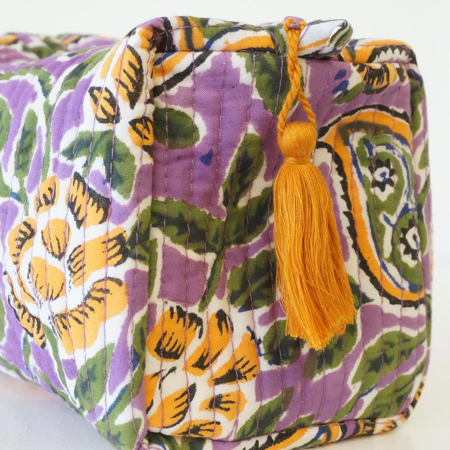 Trousse avec Fond en Tissus – Branches de Fleurs de Cerisier – Mauve Pâle, Violet, Vert Menthe, Jaune Moutarde et Blanc