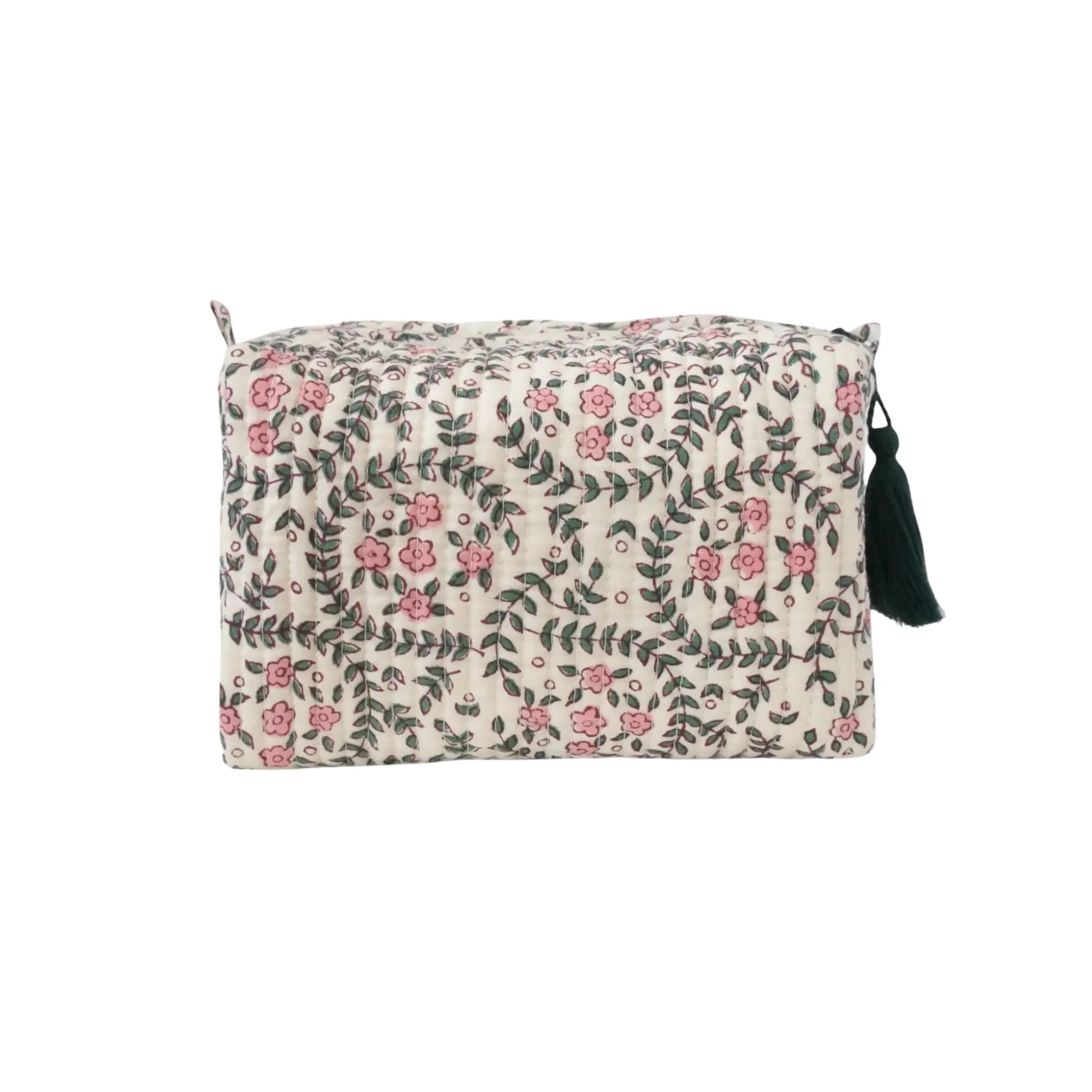 Trousse avec Fond en Tissus Japonais – Fleurs de Cerisier – Vert, Rose, Blanc et Corail