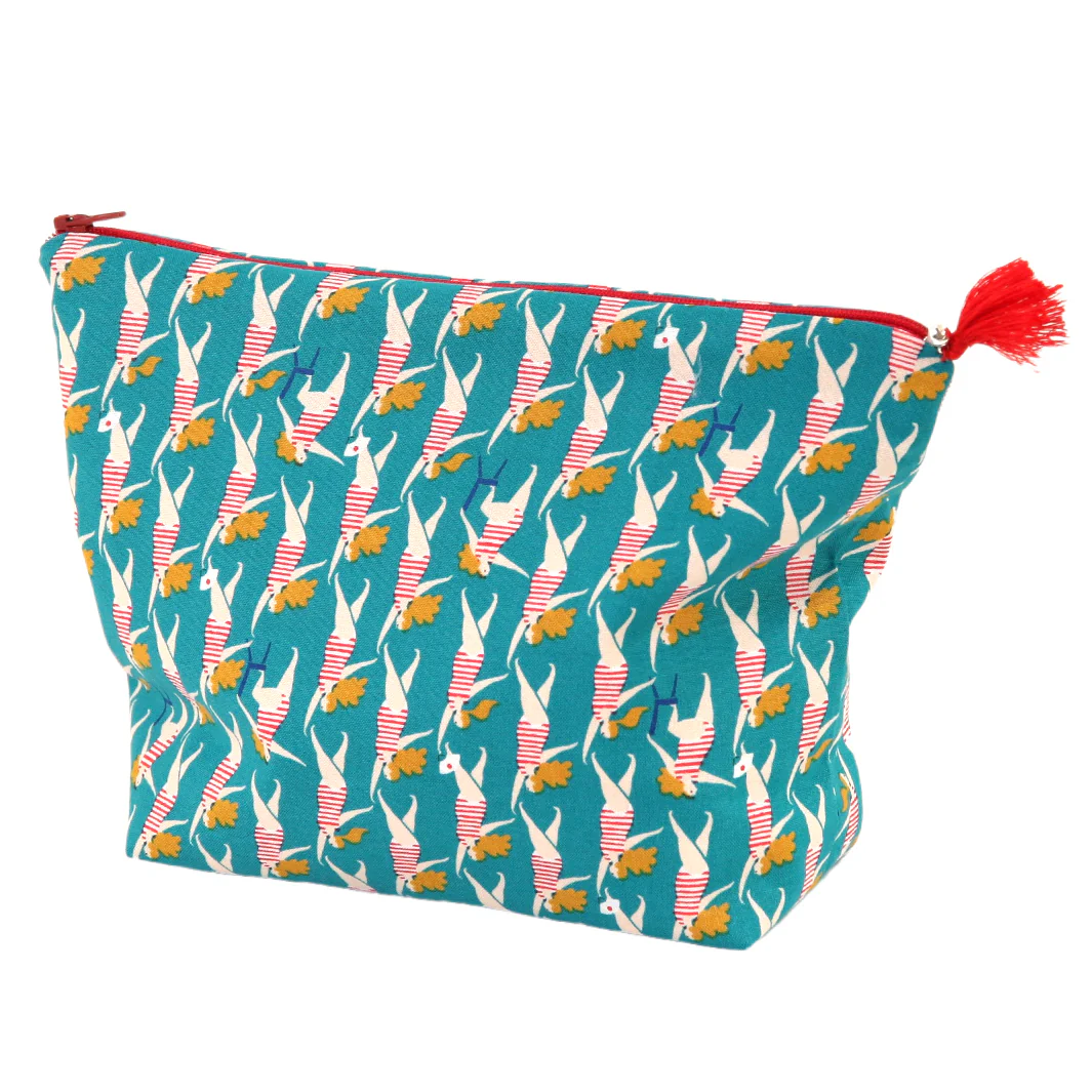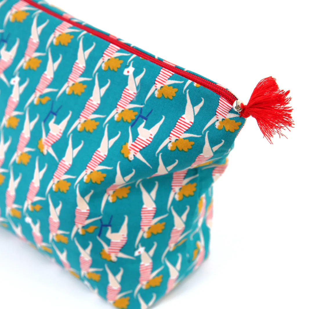 Trousse avec Fond en Tissus Japonais – Baigneuse – Turquoise, Rouge et Jaune