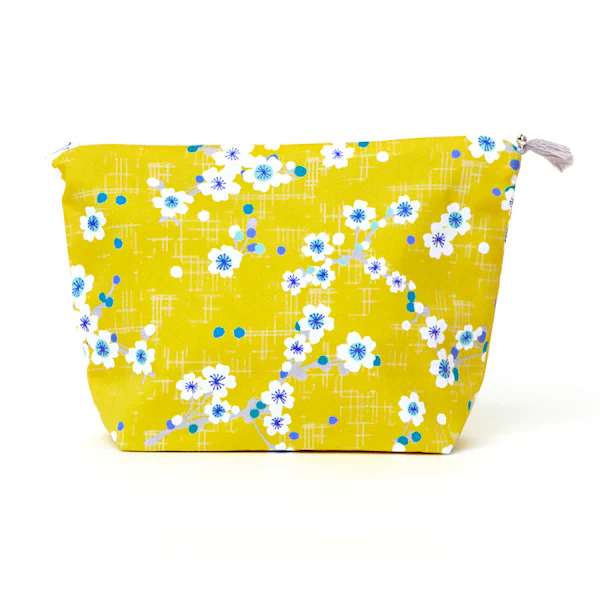 Trousse avec fond en tissus japonais – Mimosa – Jaune et Vert