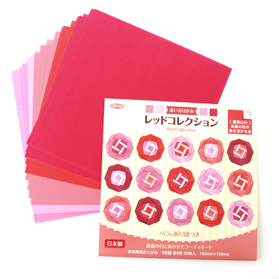 30 Papiers Origami Roses, Rouges – 5 couleurs – 15 x 15 cm