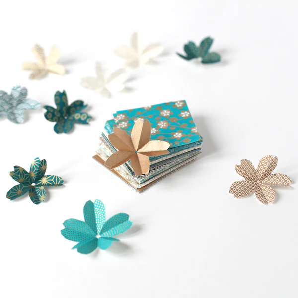 Ce format est idéal pour réaliser des petits origami (bijoux, fleur de cerisier, mini grue, etc) ou pour confectionner des éléments de décoration en origami qui nécessitent plusieurs pliages (modules et fleurs en origami, étoiles plates, etc) avec une touche chic et élégante !