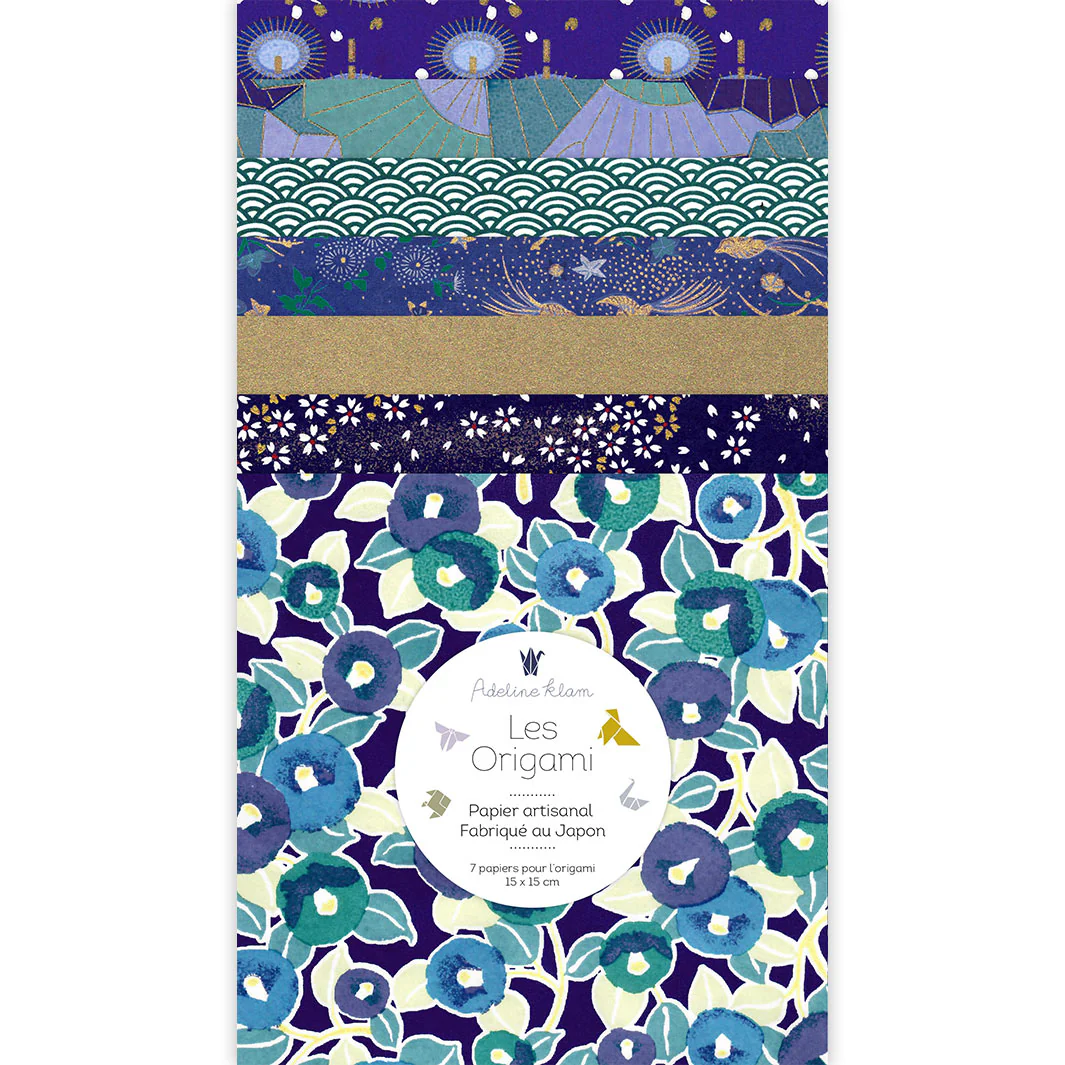 Ce petit lot contient 100 carrés de papiers japonais (washi, yuzen, chiyogami) pour l’origami de 6cm de côté, dans les tons noirs, dorés et blancs, sélectionnés par Adeline !