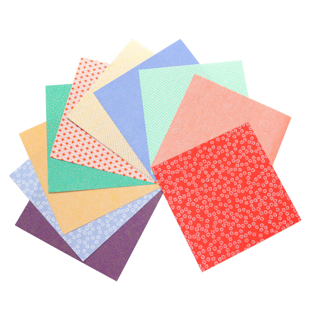 Ce petit lot contient 100 carrés de papiers japonais (washi, yuzen, chiyogami) pour l’origami de 6cm de côté dans des petits motifs, sélectionnés par Adeline !