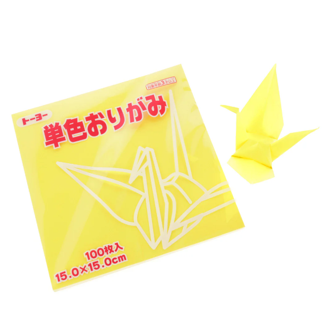 Ce lot contient 100 carrés de papier pour l’origami de couleur jaune citron. Fabriqué industriellement puis coloré par impression offset à Tokyo, ce papier de très bonne qualité présente une belle finesse et marque bien les plis.
