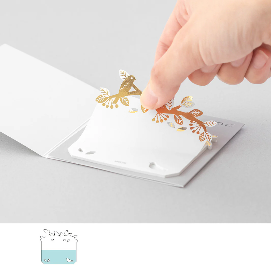 Ce lot contient 20 notes autocollantes aux motifs d’oiseaux et de branchages dorés, joliment ajourés par endroit.