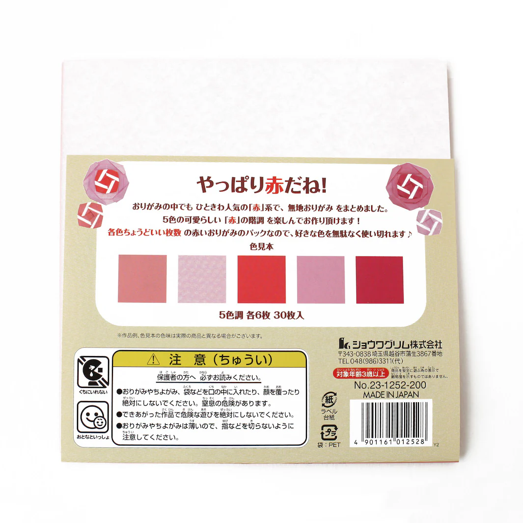 Ce lot contient 30 carrés de papiers pour l’origami dans les tons corails, rouges et roses. Fabriqué industriellement puis coloré par impression offset au Japon par la marque Showa Grimm, ce papier de très bonne qualité présente une belle finesse et marque bien les plis.