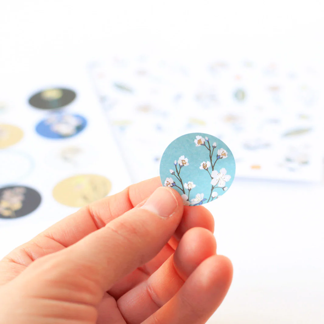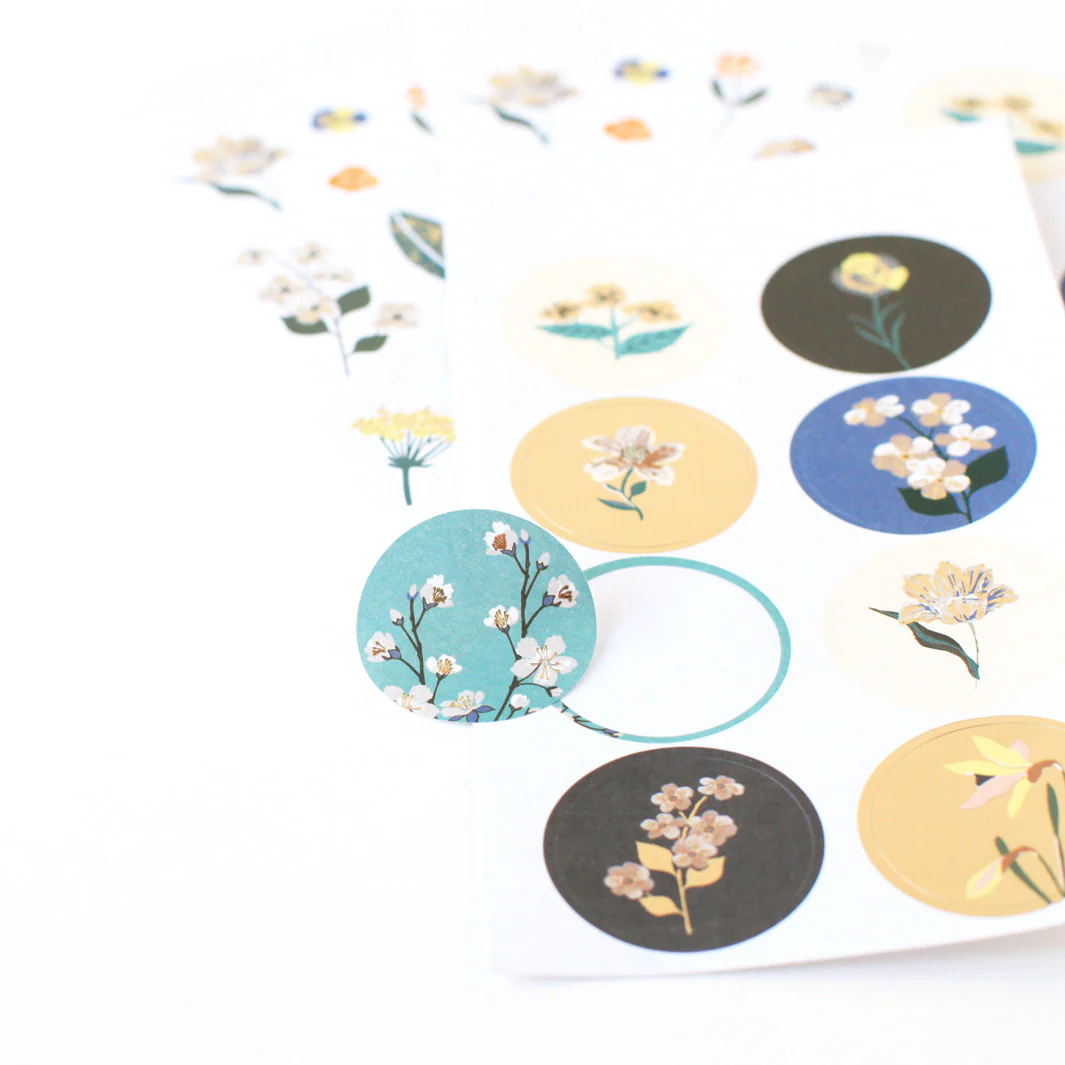 - Quantité : 60 stickers, 4 planches > 2 avec des pastilles rondes et 2 avec des silhouettes de fleurs