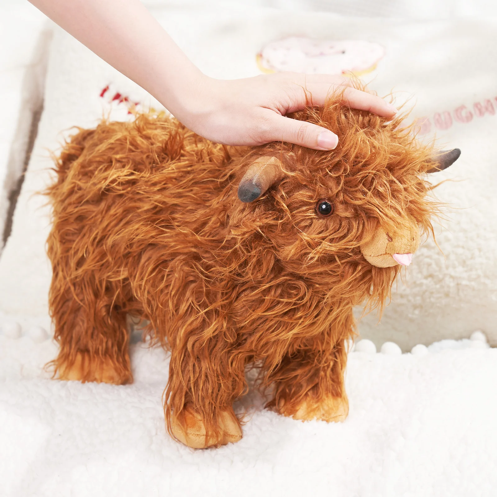 Ce joli jouet en peluche de vache des Highlands est conçu en référence à l’image réelle de la véritable vache des Highlands en Angleterre. L’apparence est vive et mignonne, ce qui peut stimuler l’exploration et la perception des animaux par les enfants.