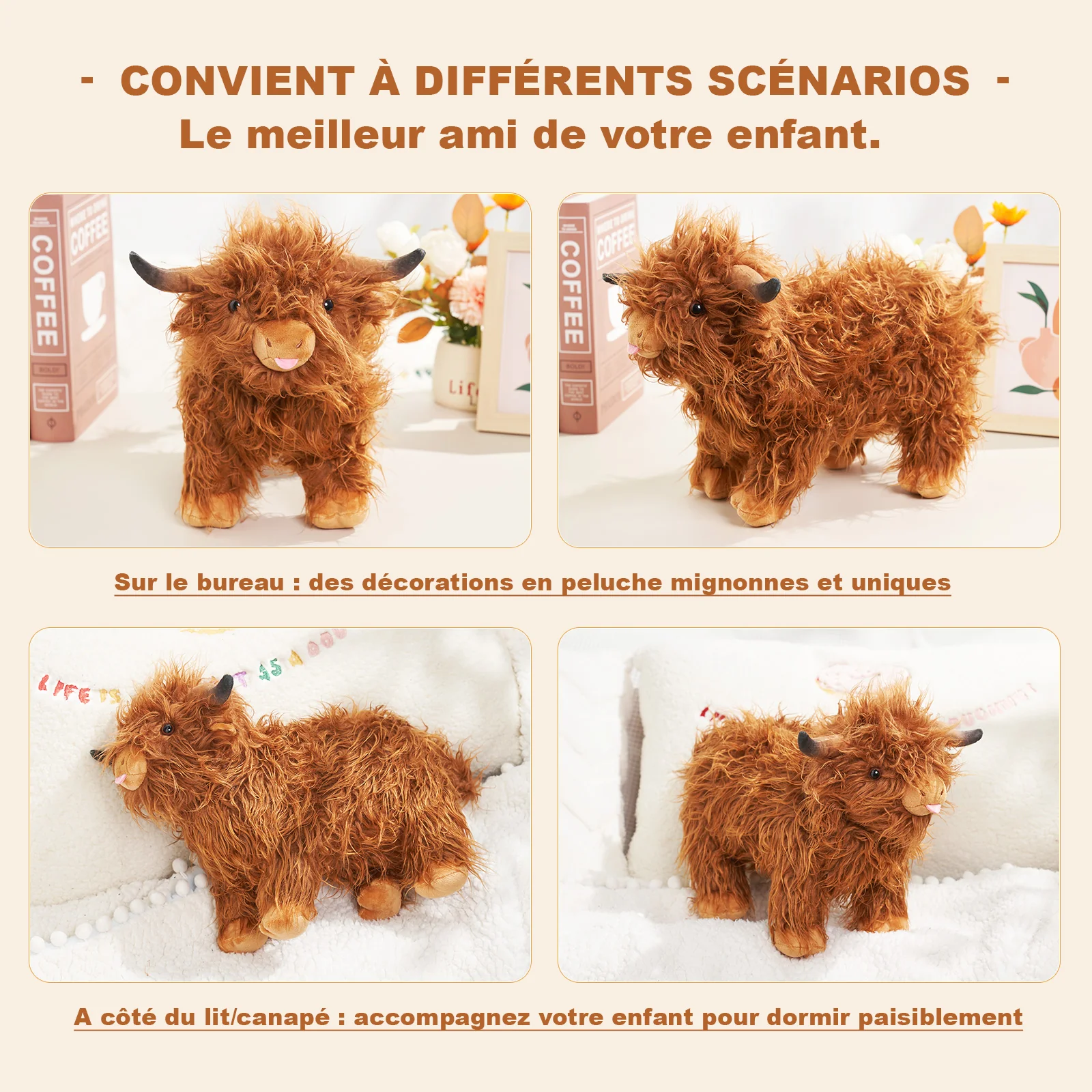 Soyez le premier à laisser votre avis sur “40 cm – Peluche géante vache marron des Highlands pour enfants”