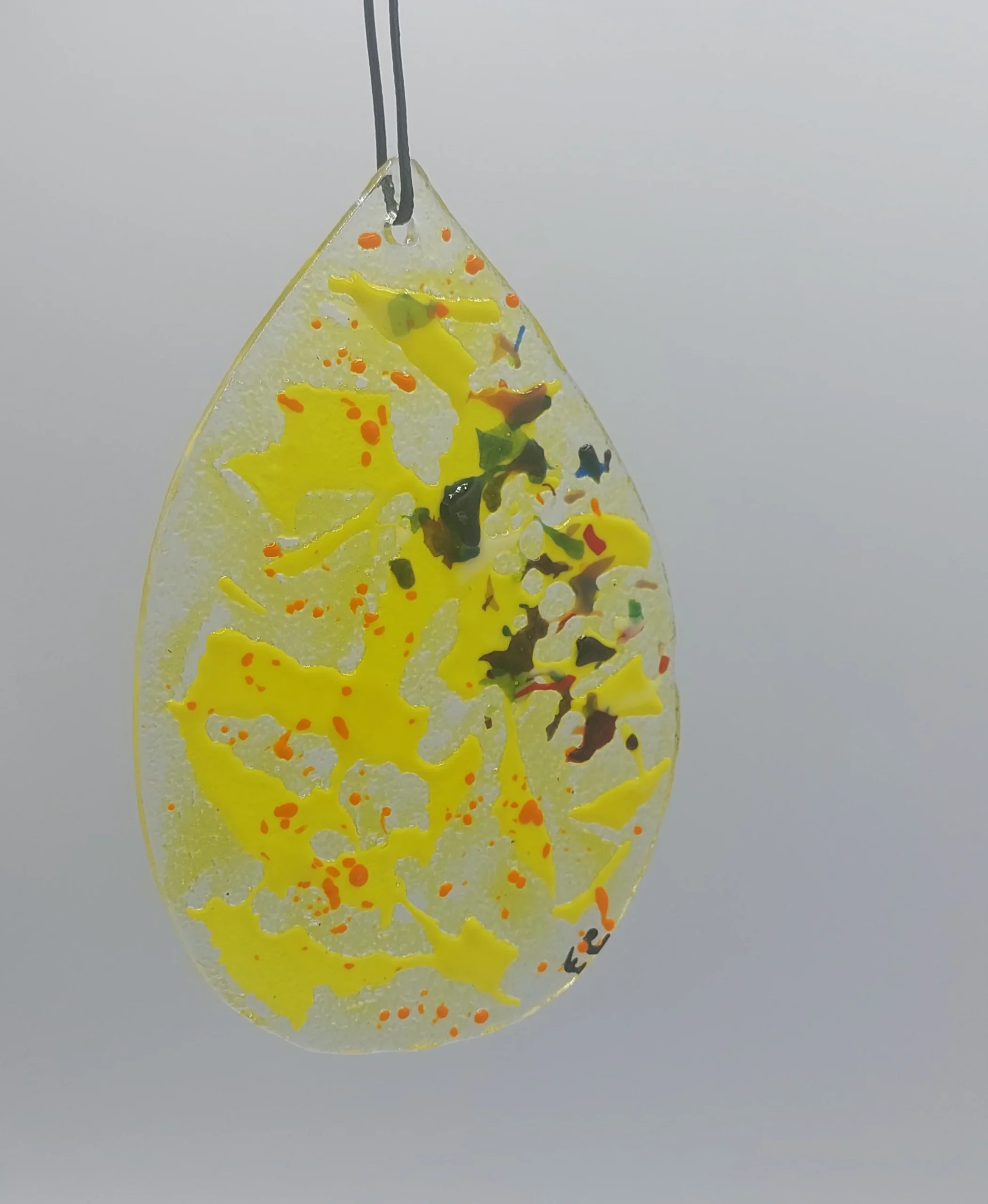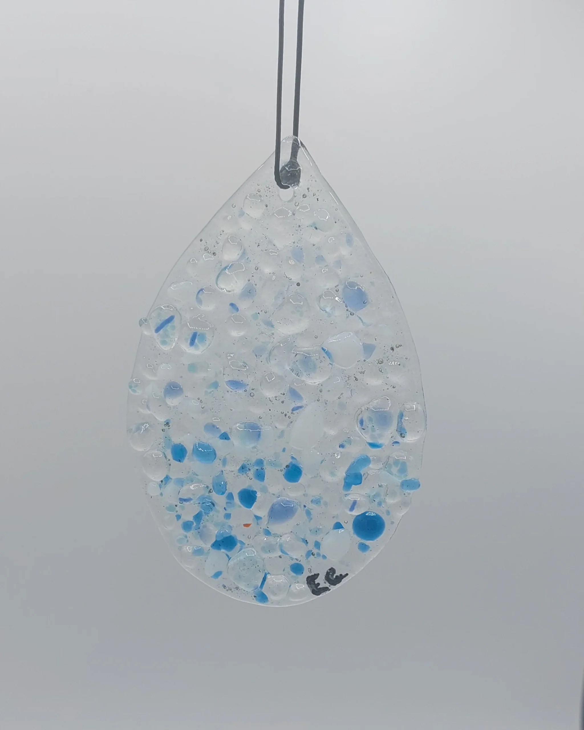 Ces attrapes-soleil « Goutte » sont des pièces uniques réalisées en verre fusionné, créant ainsi une décoration exceptionnelle et colorée.