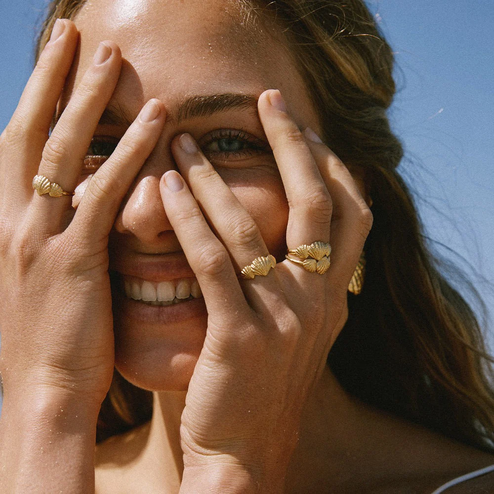 La bague coquillage Almé représente trois petits coquillages, aux bords festonnés.