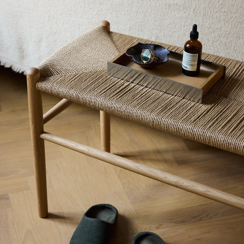 Le banc de piano J163, fabriqué par FDB Møbler, a le même design emblématique que les chaises J80, J81 et J82 de Jørgen Bækmark. Ce banc est composé de chêne naturel avec une tresse de panier naturel. Il est également très utile, même sans piano, dans la salle à manger, votre couloir ou votre salle de bain.