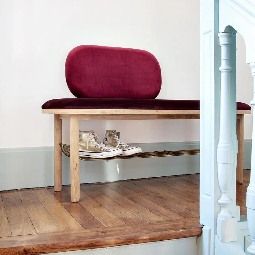 Le banc Eustache est aussi pratique qu’élégant, avec son velours de boudoir, ses finitions soignées et son panier en métal couleur laiton. Dans une entrée ou une chambre, il est l’indispensable banc où se déchausser, poser sa veste, ranger ses souliers.