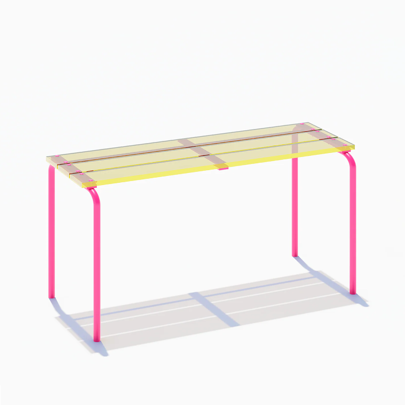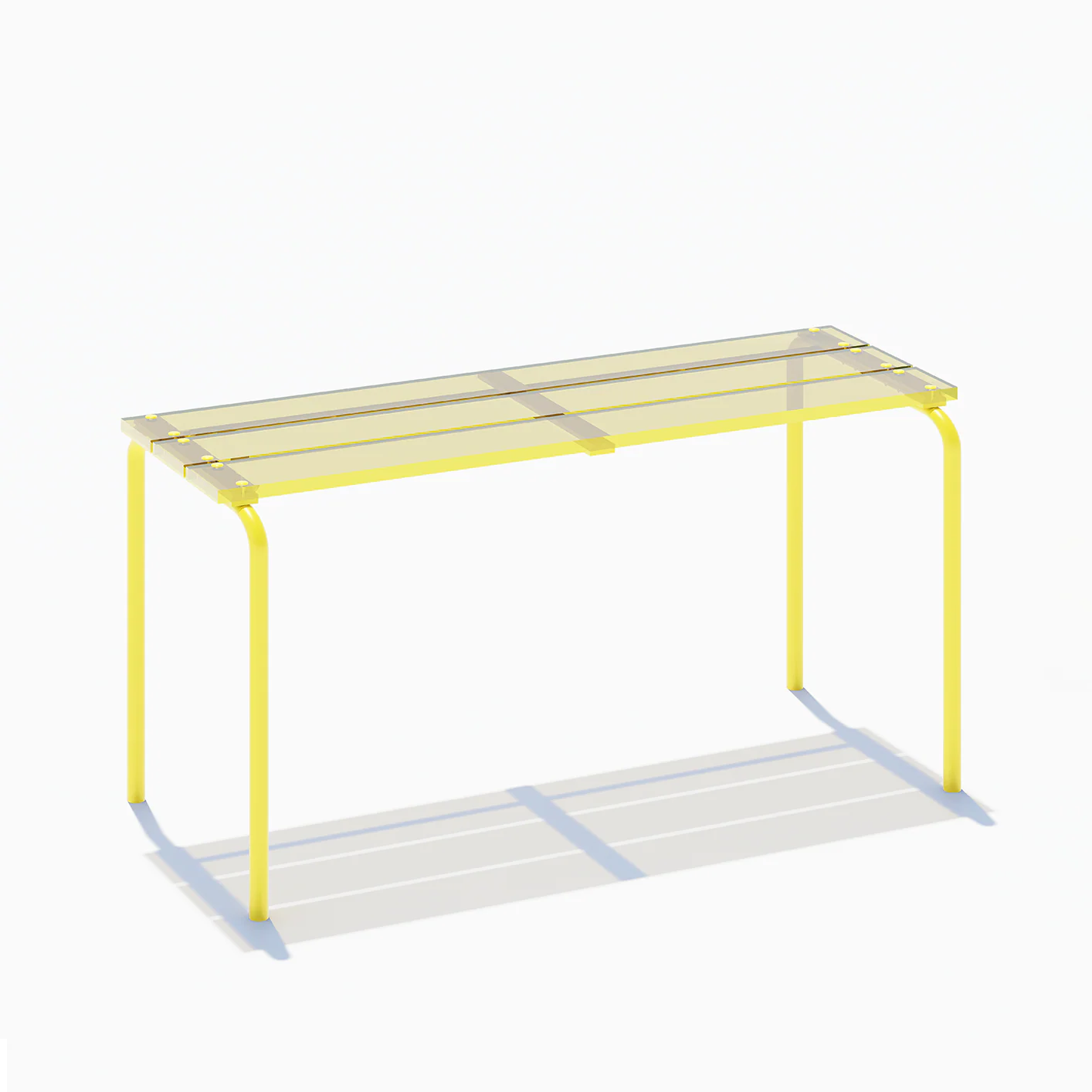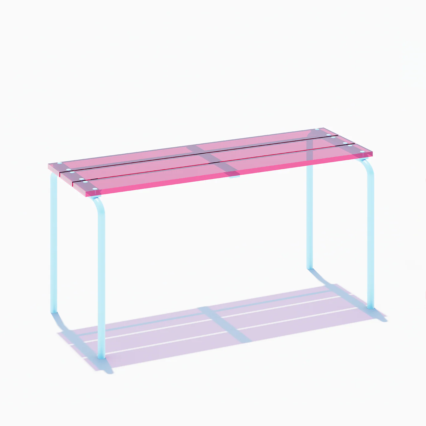 Ce banc existe en différentes teintes d’assises et de piétement.