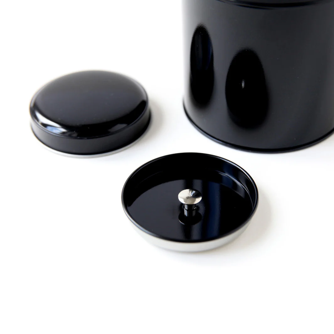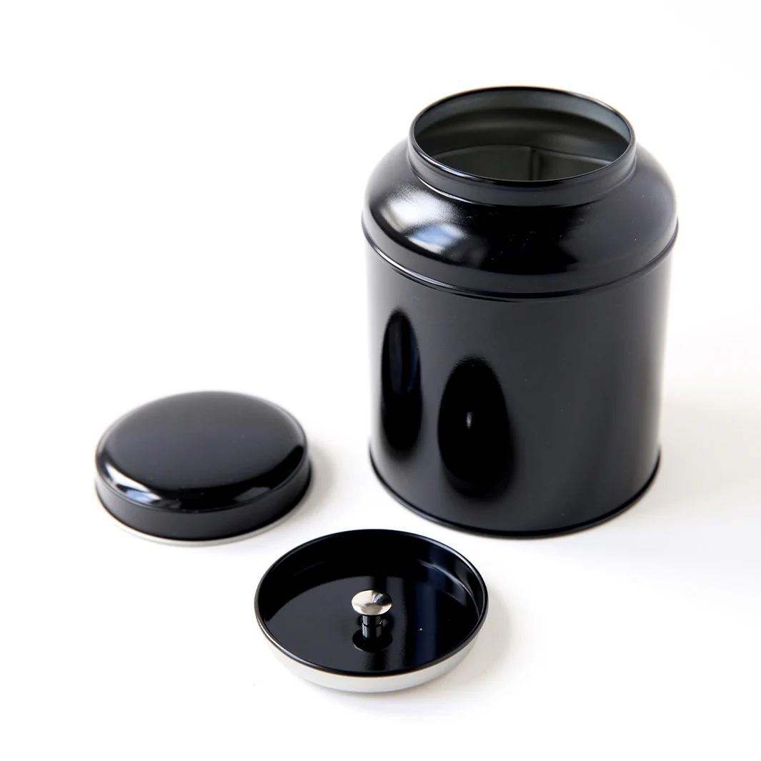 Cette boîte à thé, noire, en métal à décorer en forme de dôme sera parfaite pour conserver votre thé ou votre tisane de manière élégante.