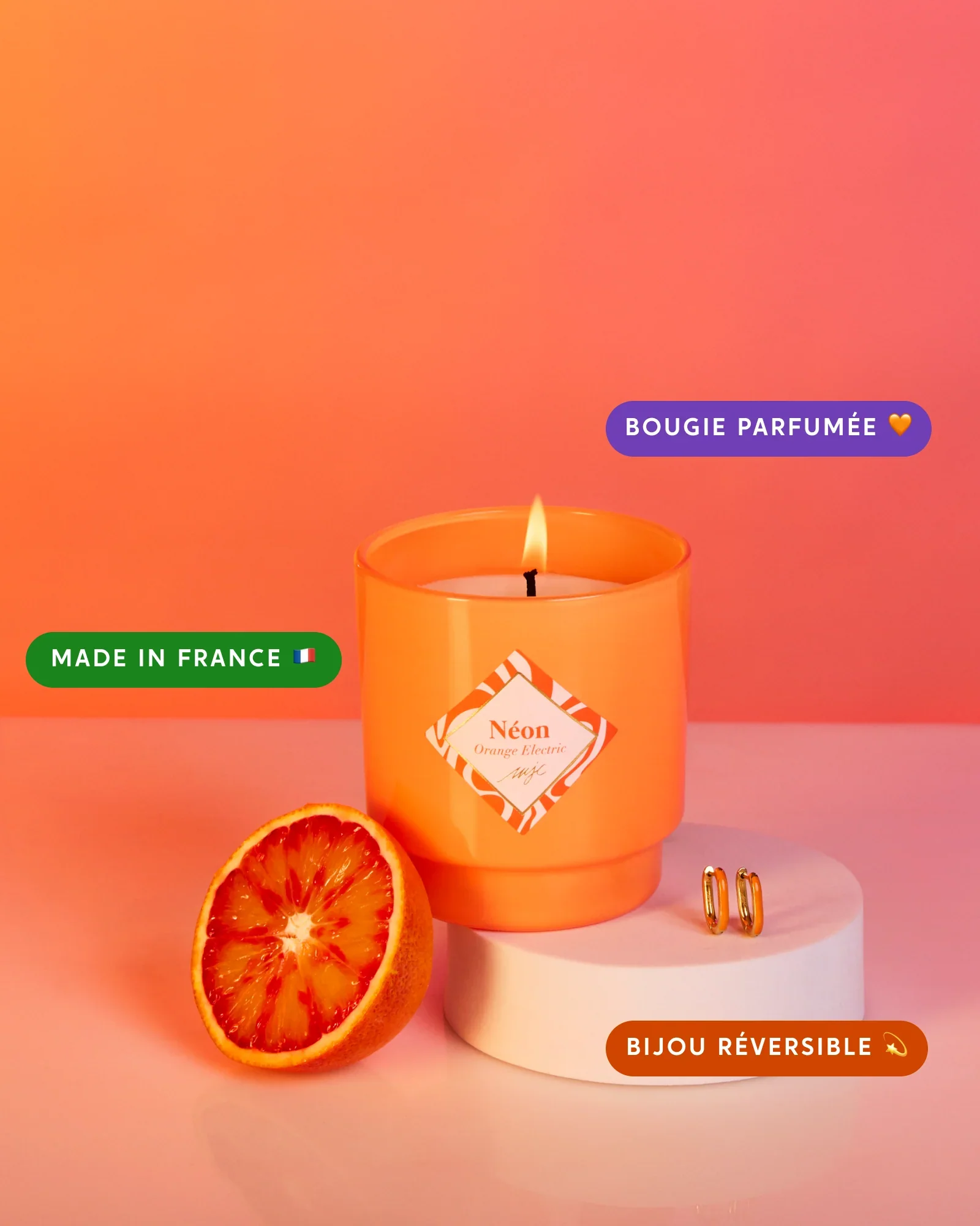 Bougies parfumées avec boucles d’oreilles à choisir à l’intérieur.