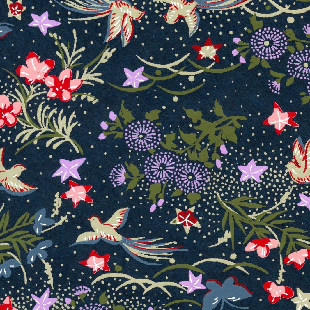 Référence du papier : Papier Japonais – Fleurs, Oiseaux et Papillons – Bleu Marine, Rouge, Mauve, Vert Clair et Foncé – M951