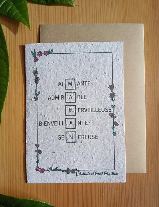 Chez Libellule et Petit Papillon, tout est pensé pour le « zéro déchet » : chaque carnet s’accompagne d’une carte ensemencée de graines de fleurs. Il vous suffira de la planter dans votre jardin et laisser Dame Nature faire le nécessaire !