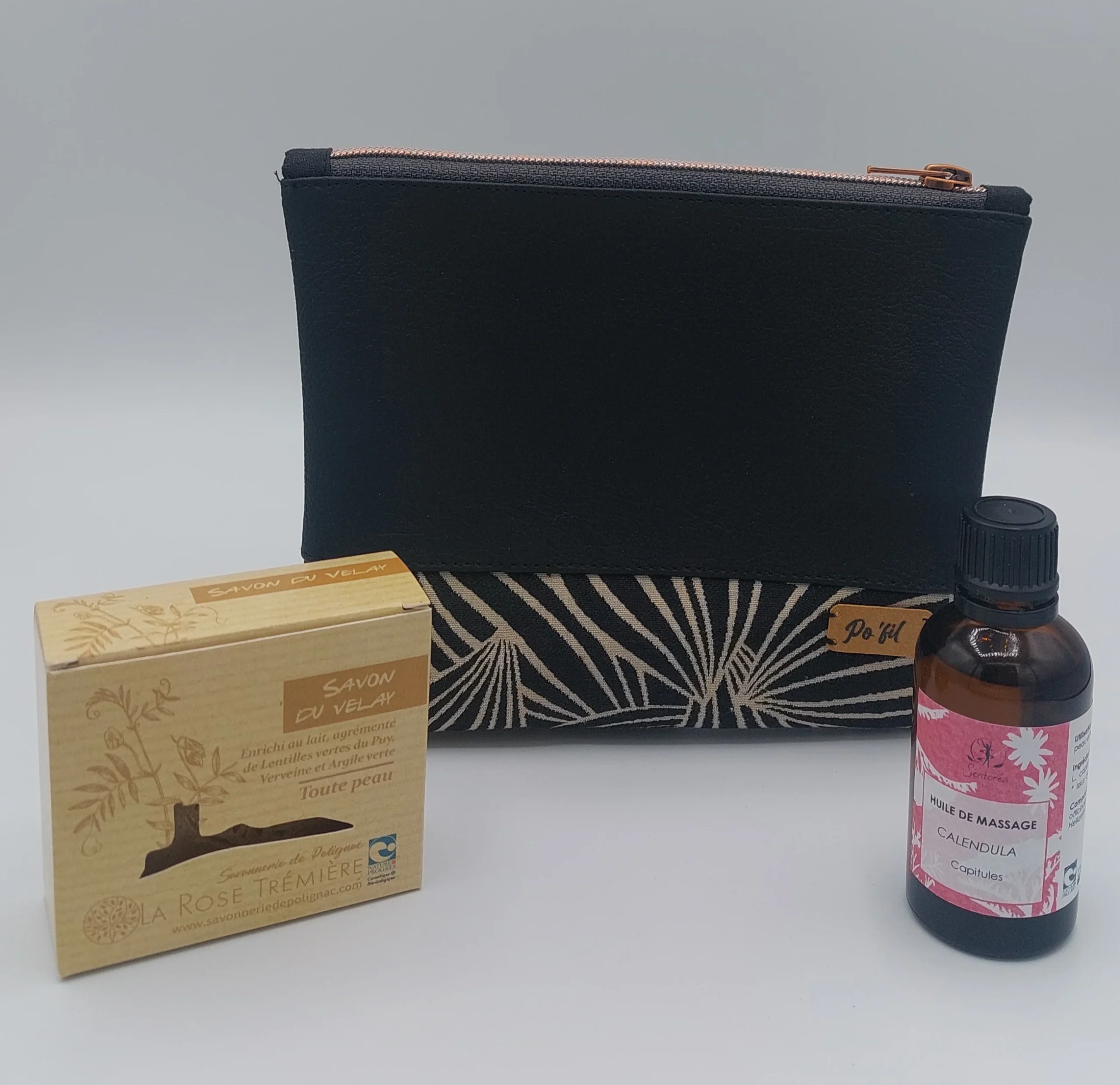 - Une pochette plate bi-matière coton/similicuir par la couturière-cératrice Po’Fil : subtile et chic et surtout unique cette petite pochette séduit dès le premier regard. Pratique et élégante, elle se prête à de multiples usages : pochette de voyage, trousse de maquillage ou encore rangement discret dans un sac à main. Son format compact et son design chic en font un accessoire pratique pour toutes les occasions.