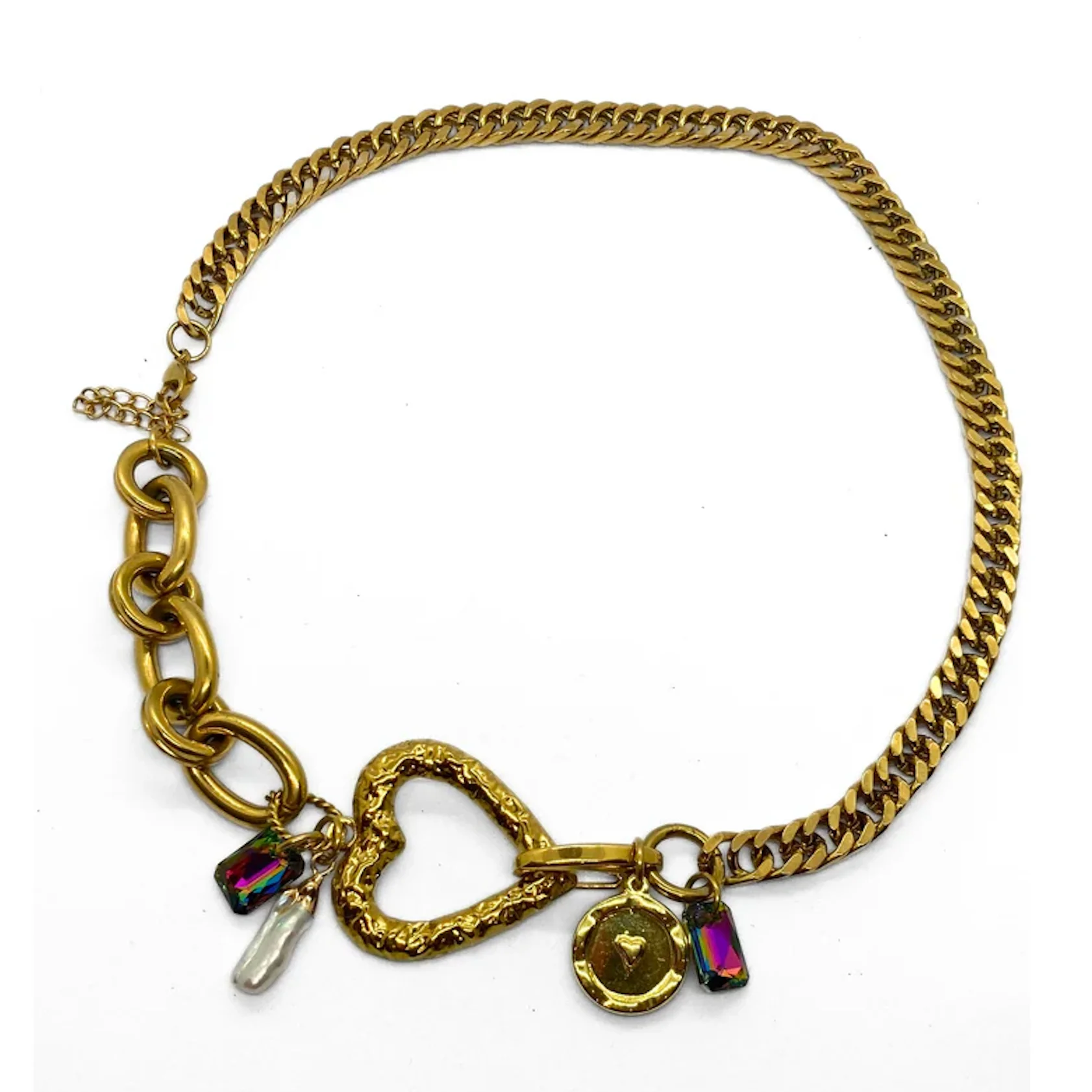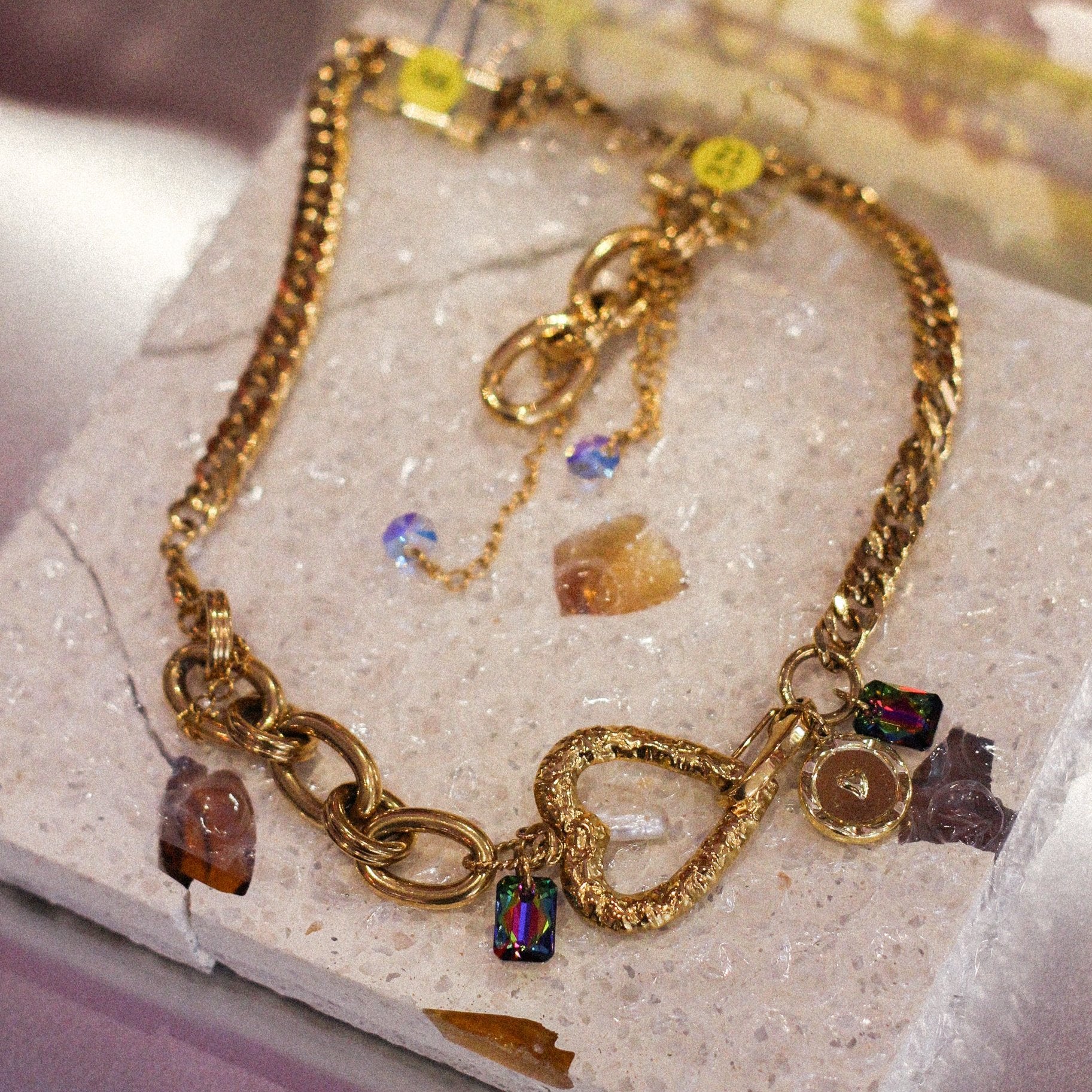 Sa chaîne en acier inoxydable, solide et éclatante, est rehaussée de pampilles en laiton doré à l’or fin, pour une touche lumineuse pile comme on aime. Grâce à sa longueur ajustable, il s’adapte à tous les styles.