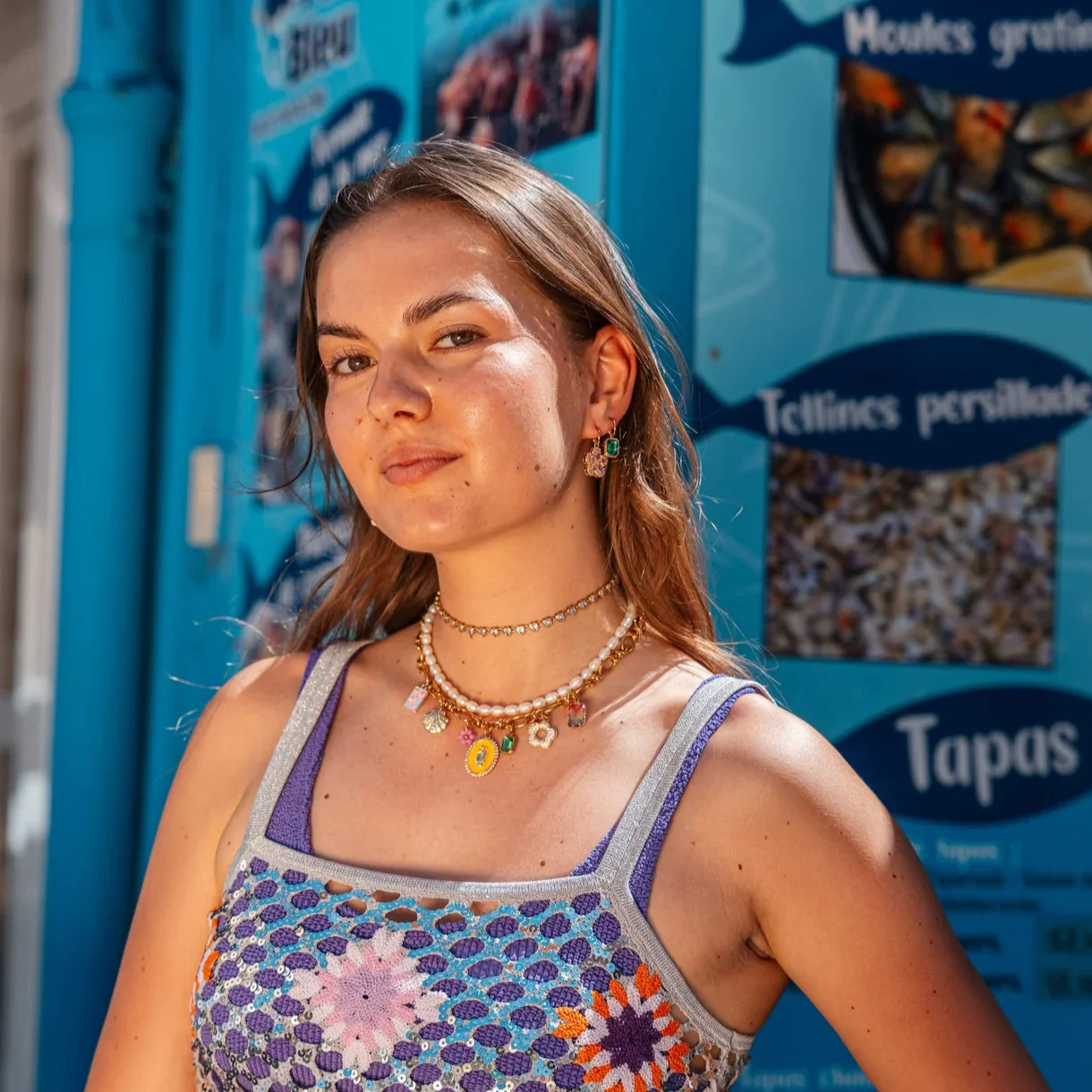 Imaginé et assemblé avec soin en France, ce bijou célèbre la joie, les couleurs franches et l’audace de celles qui osent.