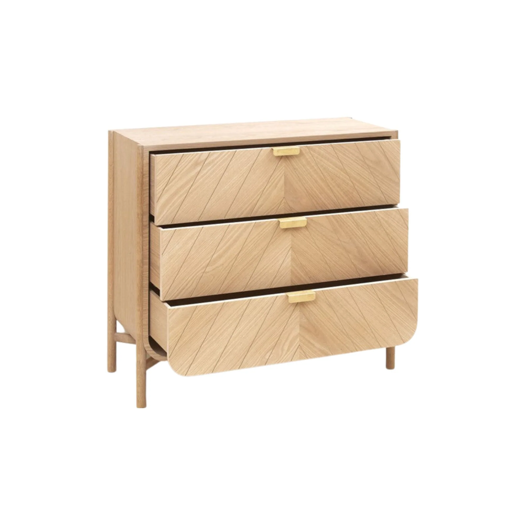 La commode Marius vous initie aux plaisirs de l’évasion tout en restant à bon port. Sa présence solaire, stable et douce est une véritable invitation aux voyages… immobiles. Les rainures obliques sur la façade de ses tiroirs dessinent la grand-voile pour un magnifique voyage en intérieur.