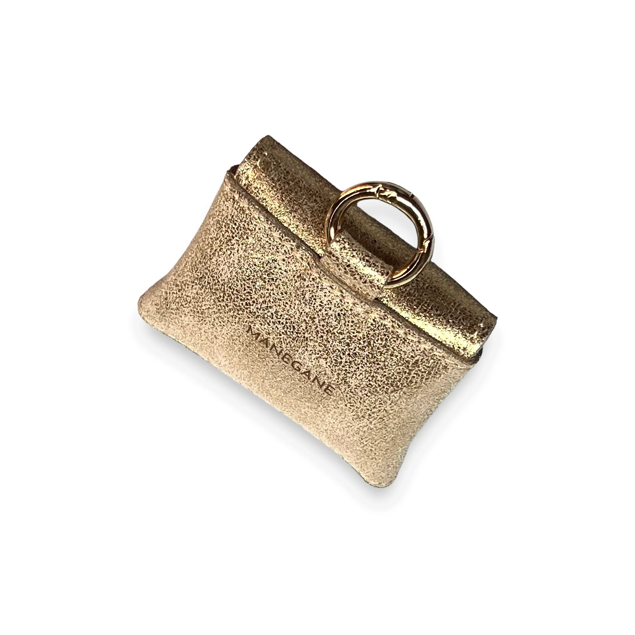 Le cuir de l’étui est rehaussé de surpiqûres ton sur ton et son élégant bouton de col doré vient apporter une touche raffinée et discrète, sécurisant sa fermeture.