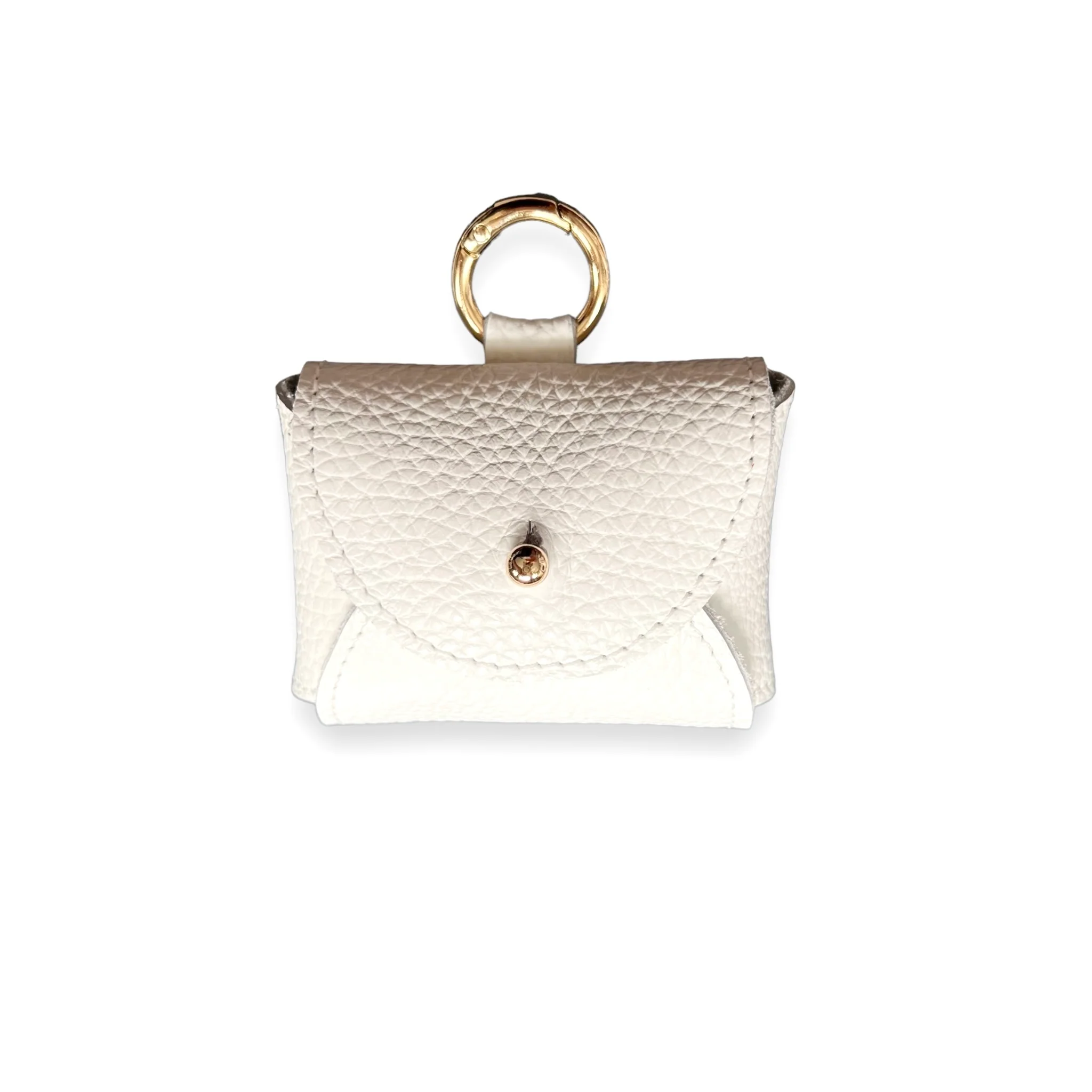 Le cuir de l’étui est rehaussé de surpiqûres ton sur ton et son élégant bouton de col doré vient apporter une touche raffinée et discrète, sécurisant sa fermeture.