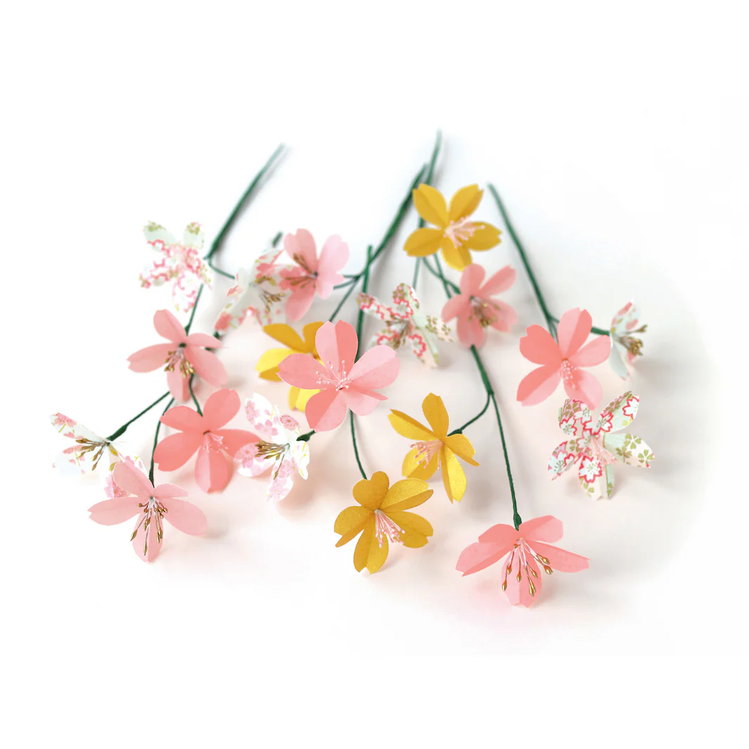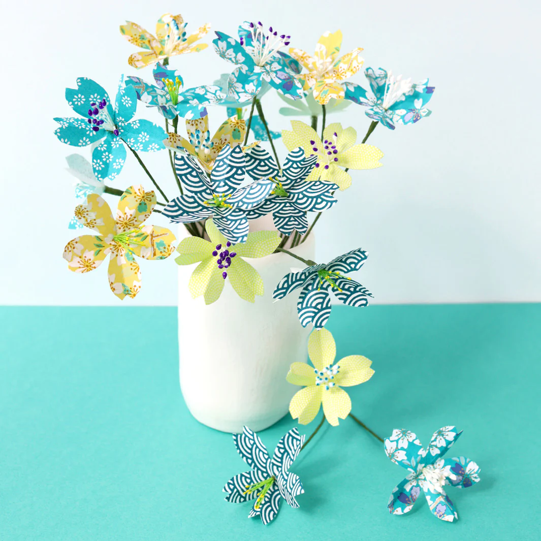 Sur notre blog, découvrez le tutoriel de la fleur de cerisier. Découvrez également nos autres kits de fleurs en papier japonais et papier crépon.