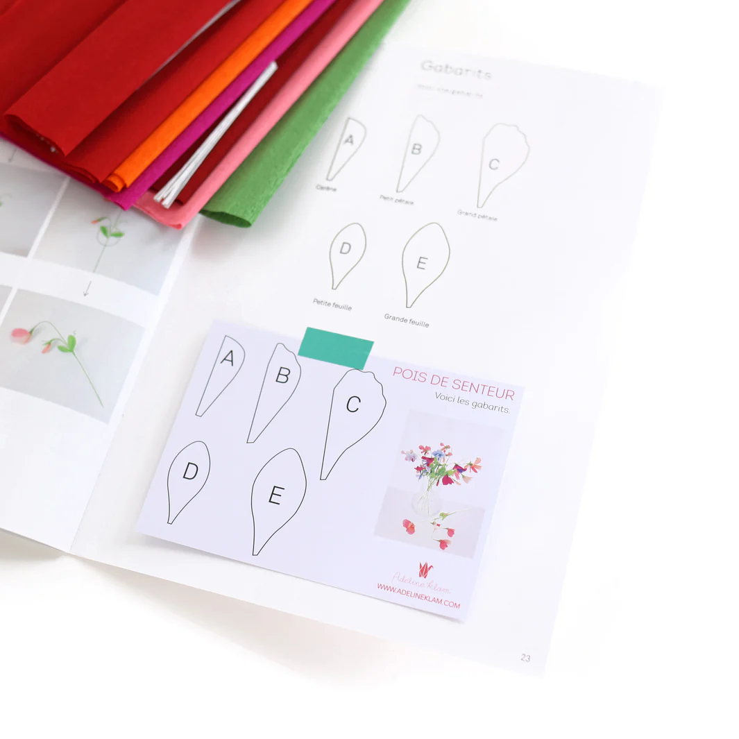 - un manuel très détaillé pour apprendre à réaliser 10 branches de pois de senteur dans 3 modèles différents,