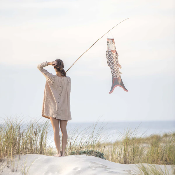 Madame Mo détourne cette manche à air poisson de sa traditionnelle origine pour en faire un objet de décoration du quotidien qui vient égayer un intérieur tout en douceur et couleur.