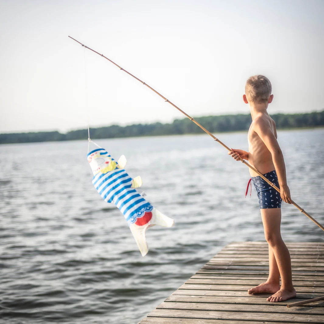 Au Japon, ce poisson volant japonais est traditionnellement hissé le 5 mai pour la fête des enfants Kodomo no hi (de kodomo, enfant, no, de et hi, jour).