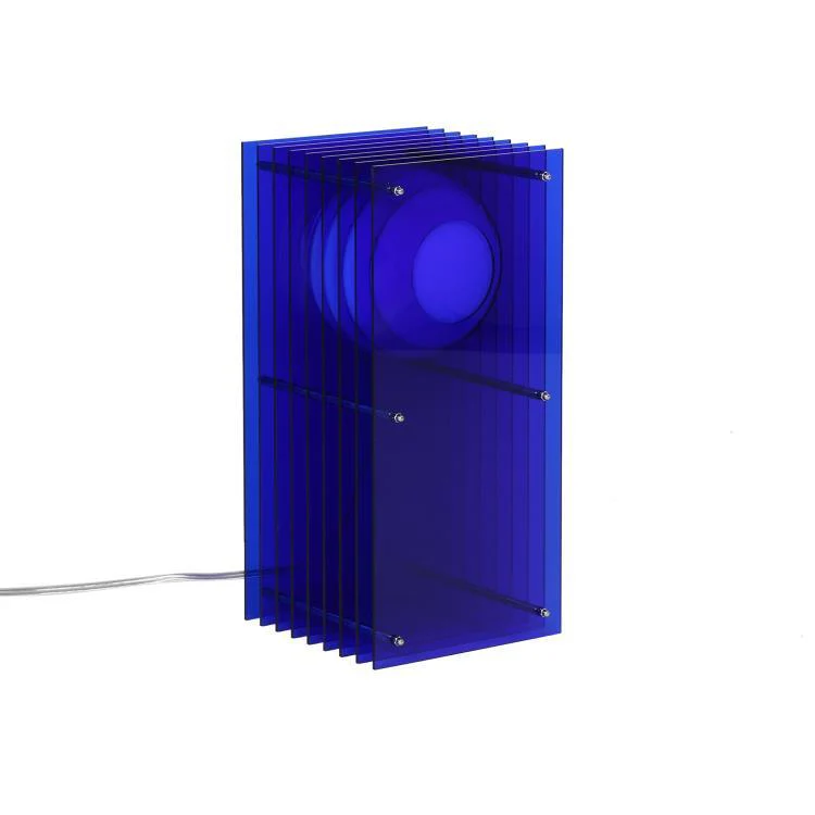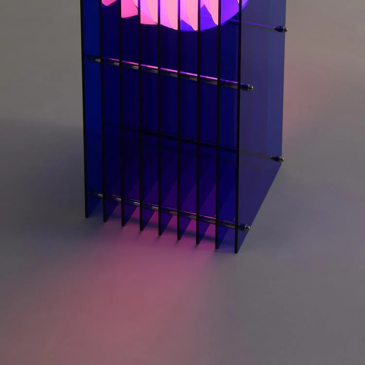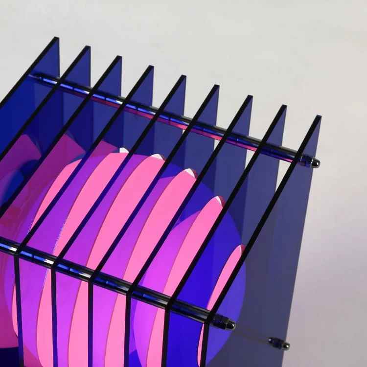 Chaque luminaire présente une sphère délicate flottant entre des strates acryliques, projetant des reflets envoûtants qui créent une illusion de mouvement. Les lampes bleues vous réservent une surprise avec une ampoule rouge, tandis que les autres s’illuminent d’une douce lumière blanche chaude.
