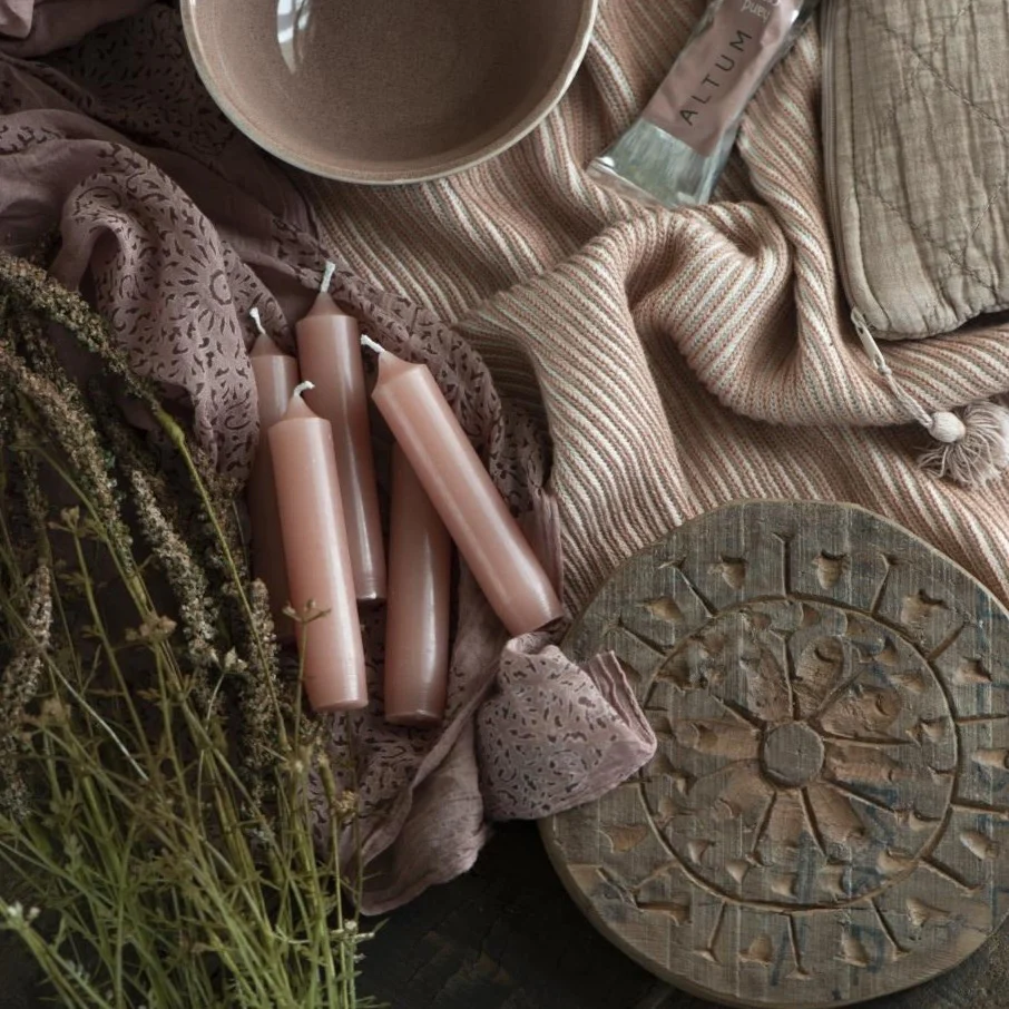 Transformez votre maison en un havre de paix avec les petites bougies roses poudré, idéales pour les bougeoirs fioles à pharmacie ou les bougeoirs anciens.