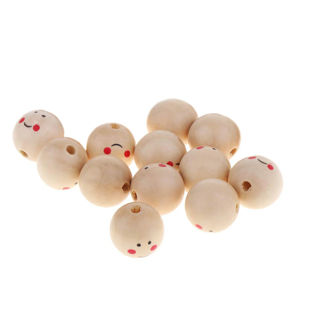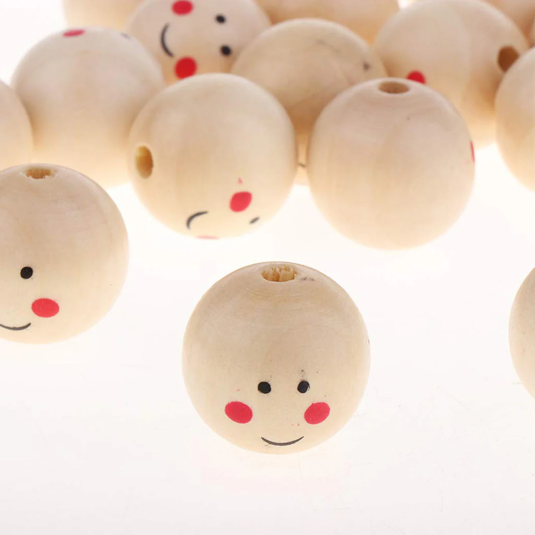 - Caractéristique du lot : 4 grosses perles « visages » en bois aux détails noirs, 4 petites noires en bois et fil doré métallique