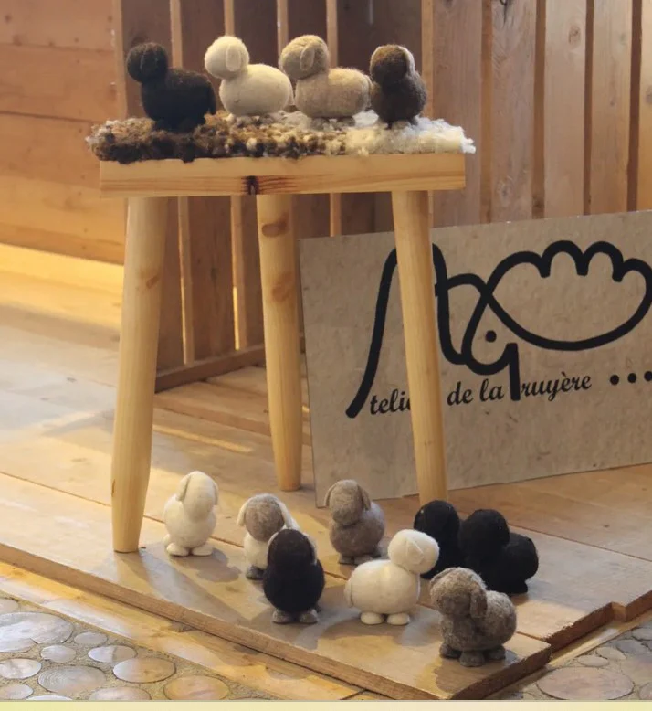 La laine qui compose ces sujets est issue de la tonte de brebis de la race “Noire du Velay” ou « Blanche du Massif Central ».