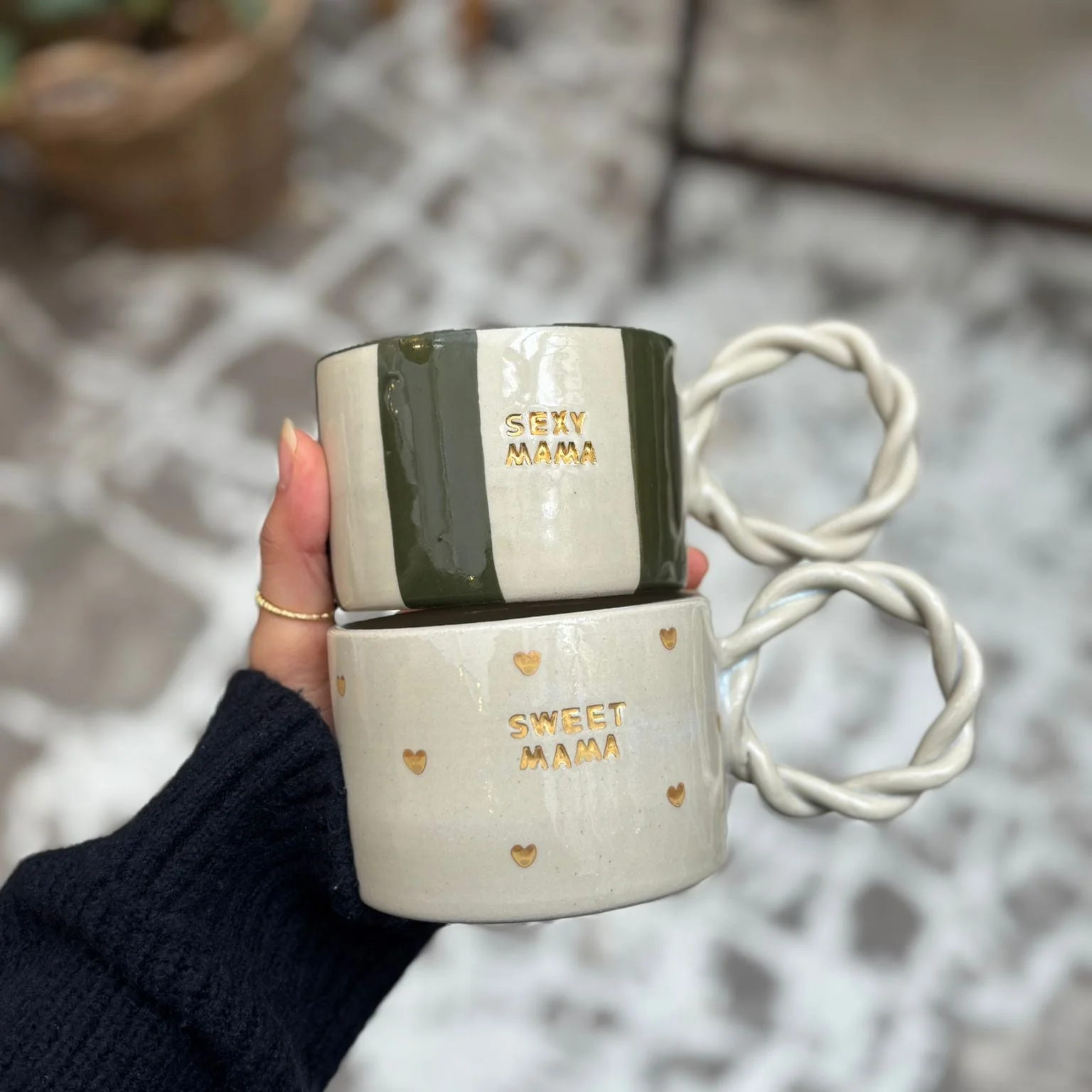 Cet adorable mug en grès , Nini cœurs, arbore un design irrégulier et de délicats motifs de petits cœurs rouges, apportant une touche ludique et poétique à vos instants de détente.