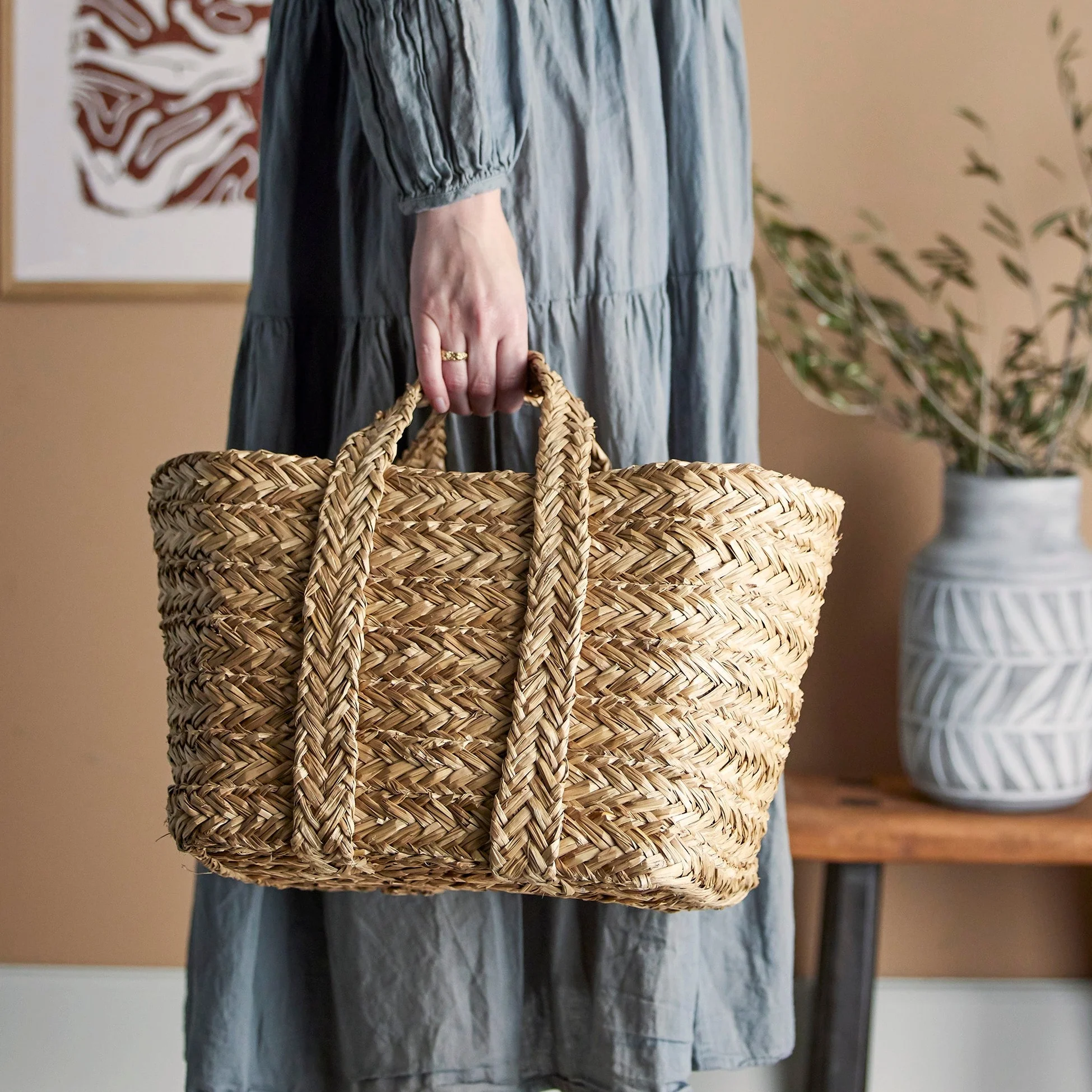 Ces jolis paniers constituent un ensemble de 3 paniers faits à la main et munis de poignées. Elégants et polyvalents grâce à leurs différentes tailles, ils peuvent contenir une multitude de choses et apportera une belle touche naturelle à votre salon ou chambre à coucher.