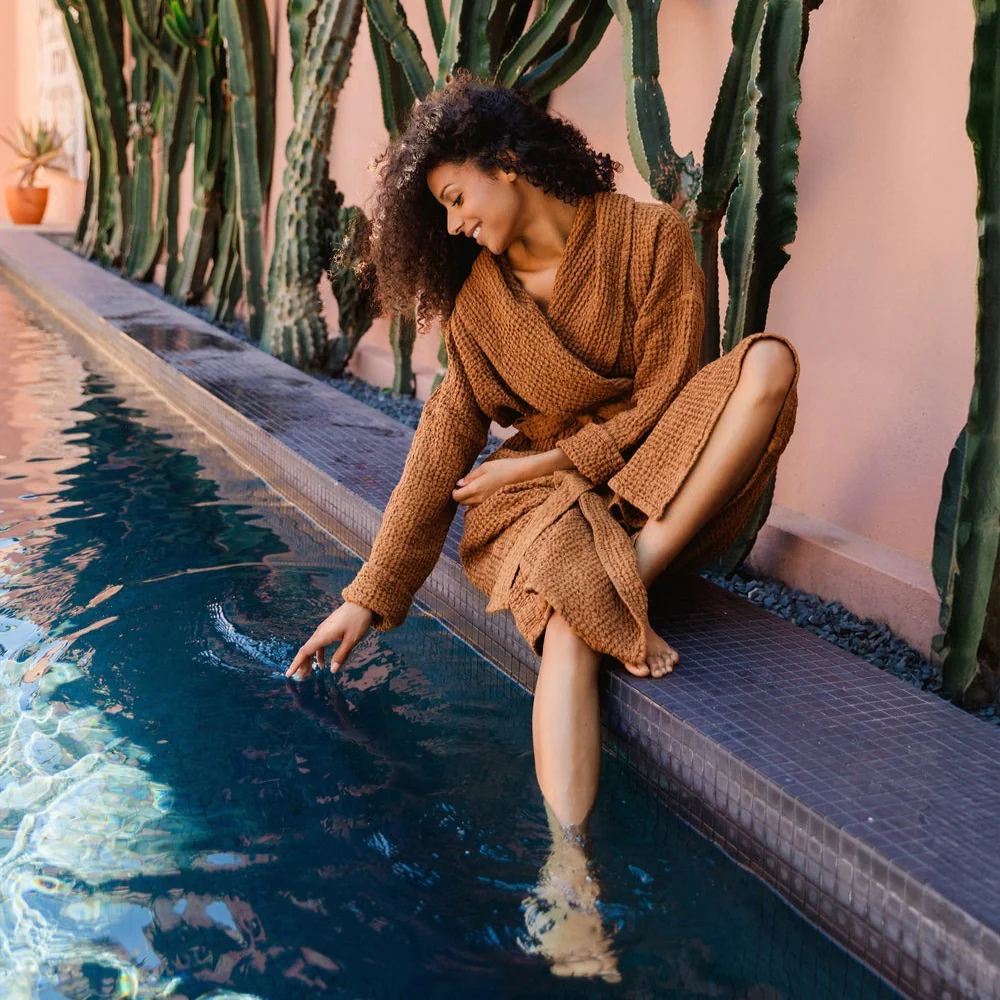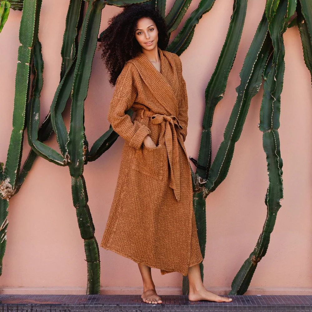 Peignoir en lin gaufré pour femmes – Cinnamon