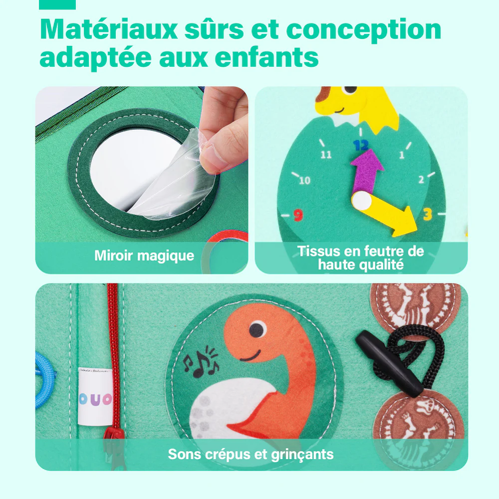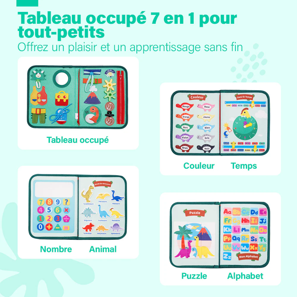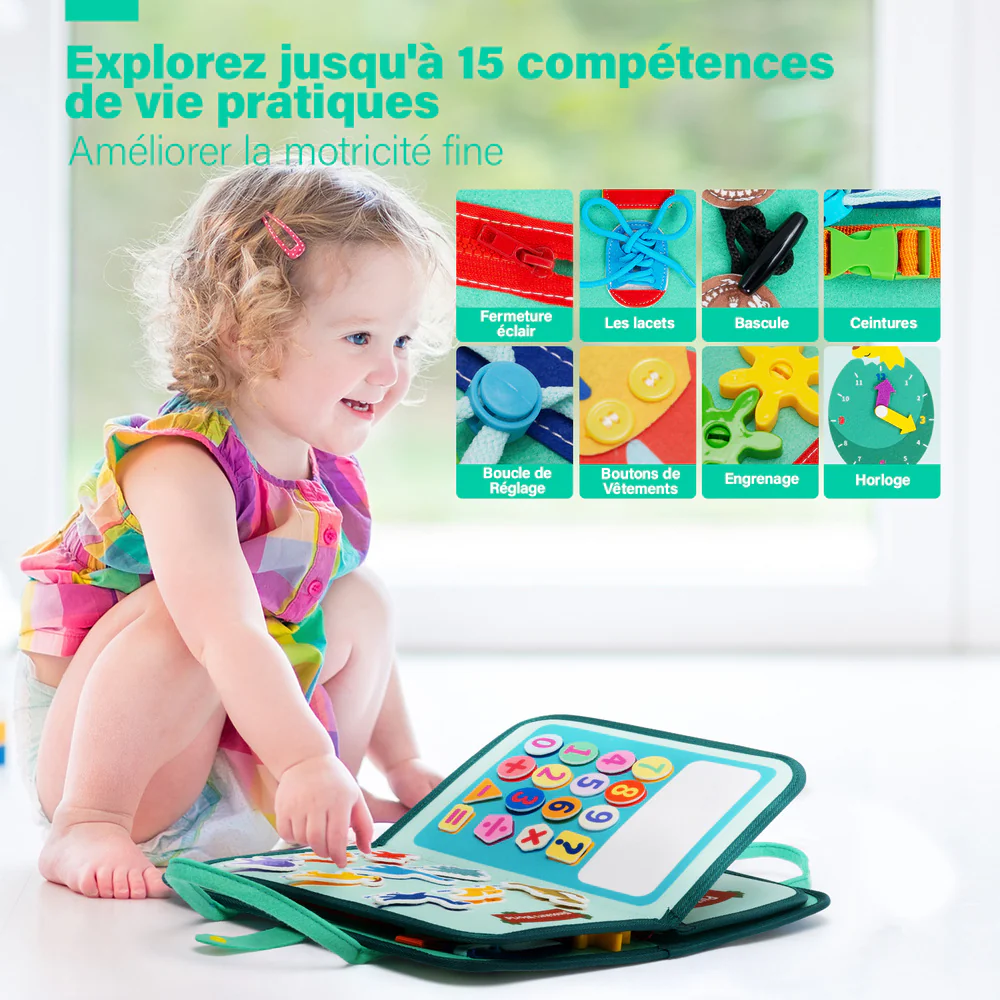 Conçu des activités Montessori pour les tout-petits pour apprendre l’ABC et les chiffres, faire correspondre les formes et les couleurs, s’entraîner à s’habiller, jouer à des puzzles, lire l’heure et les dates et développer leur motricité fine !