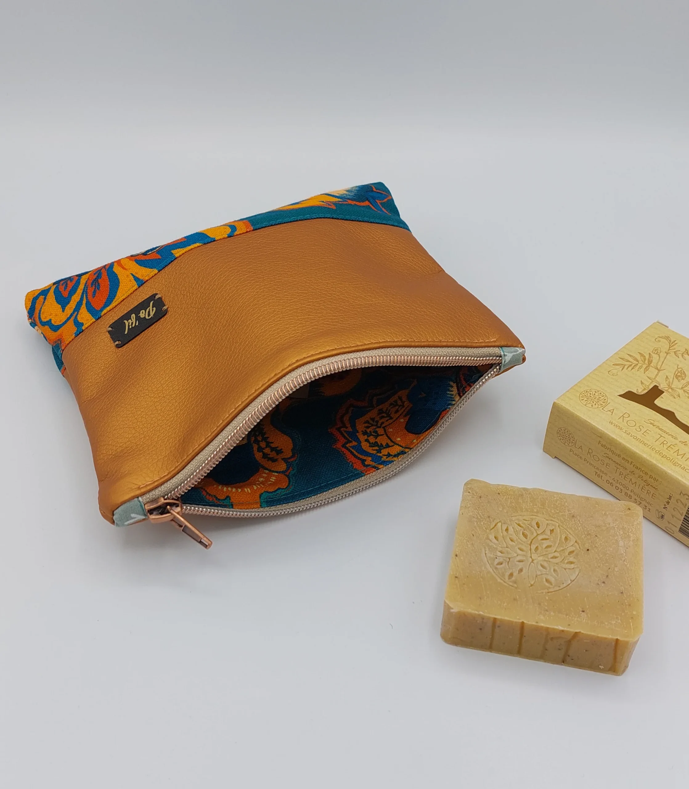 Nos pochettes bi-matières allient tissu coton de haute qualité (certifié Oeko-Tex) et le similicuir pour un style élégant et chic.